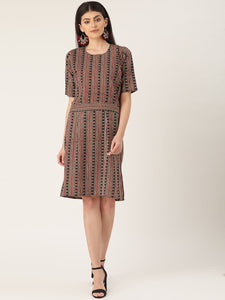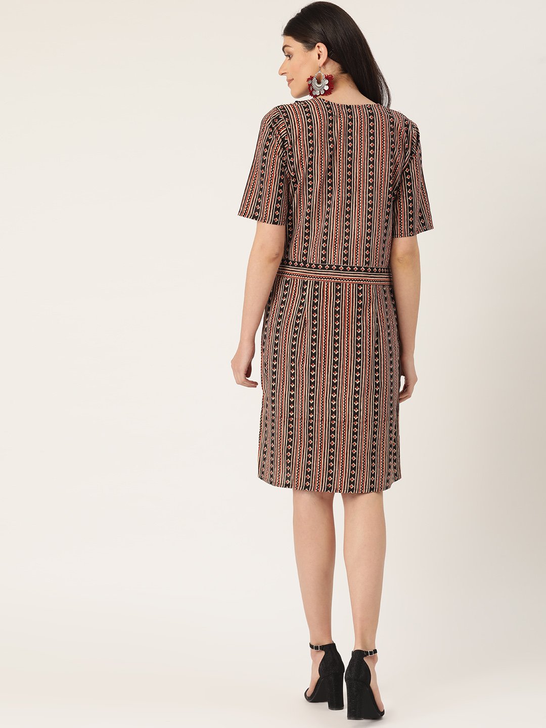 Enjoy the fresh wave of fashion this year by buying this black coloured printed dress. Spiff up your entire look by adding gladiator heels and earrings.