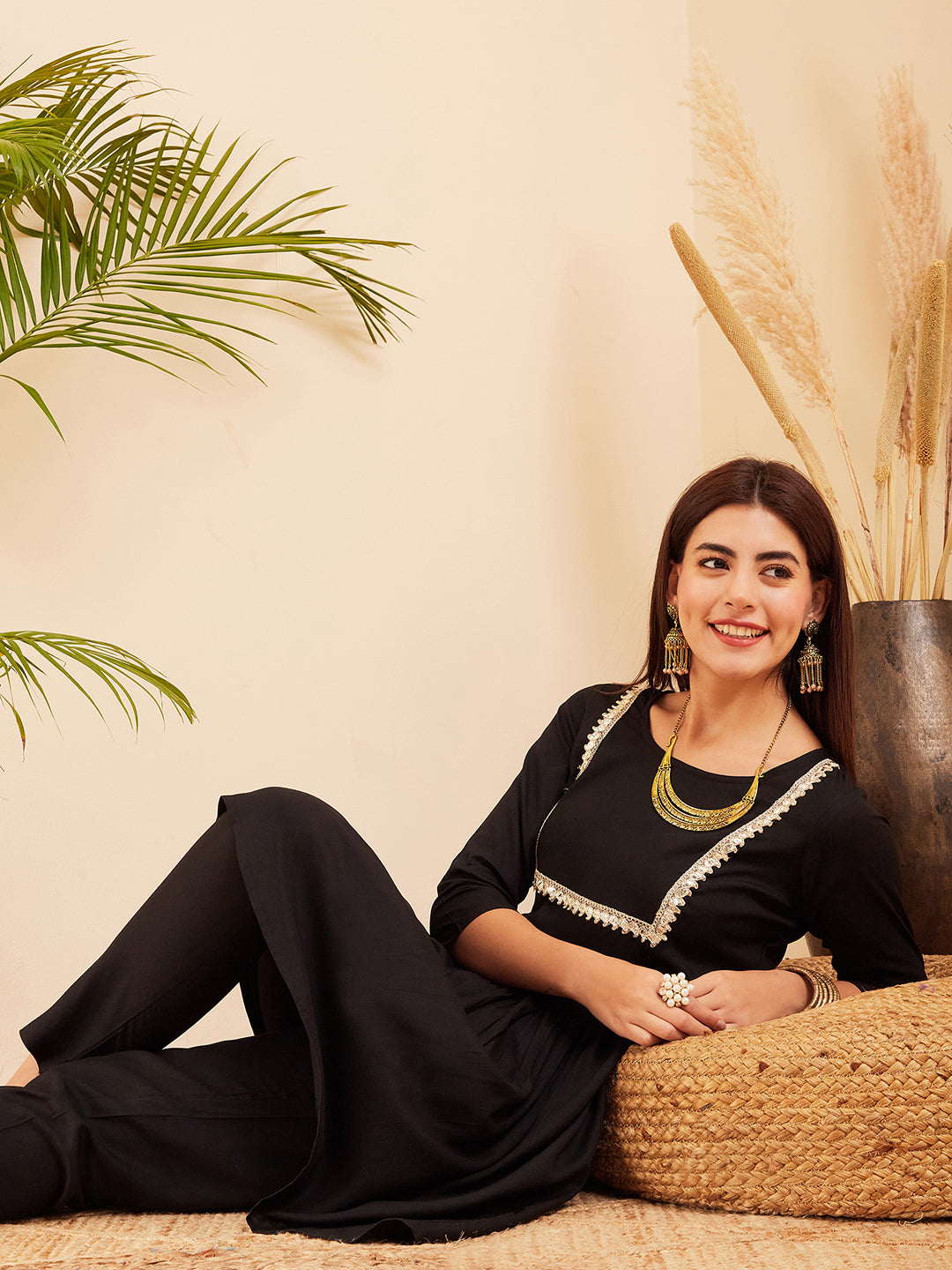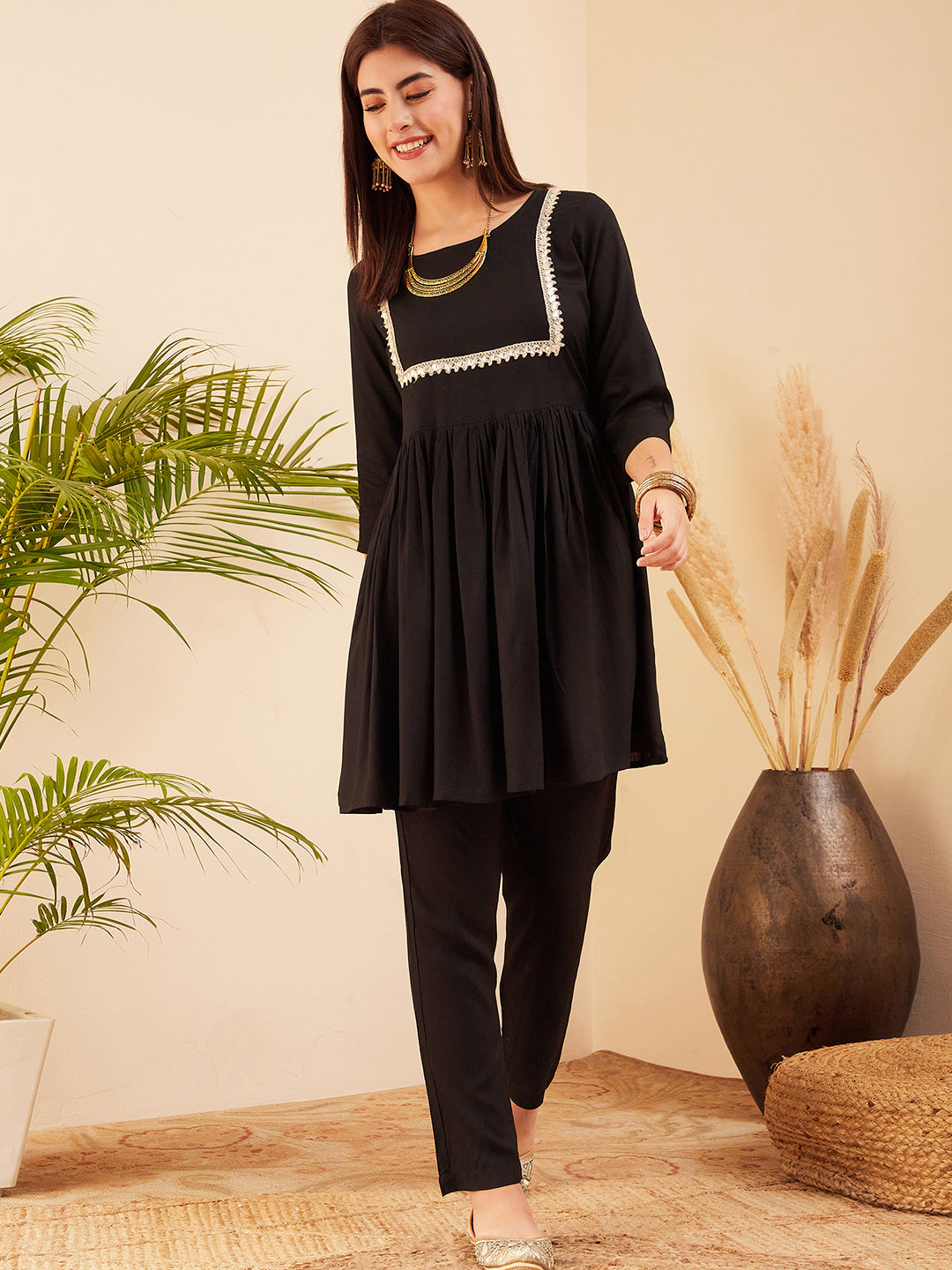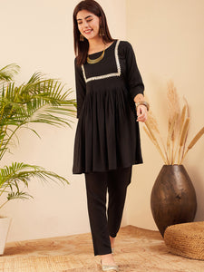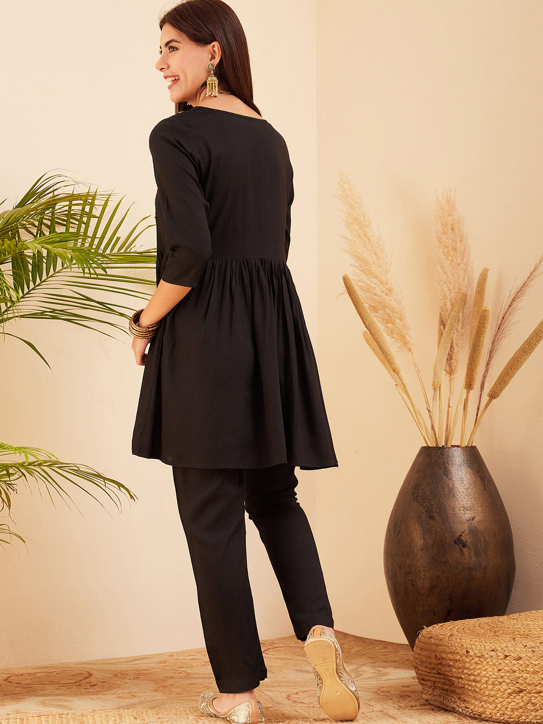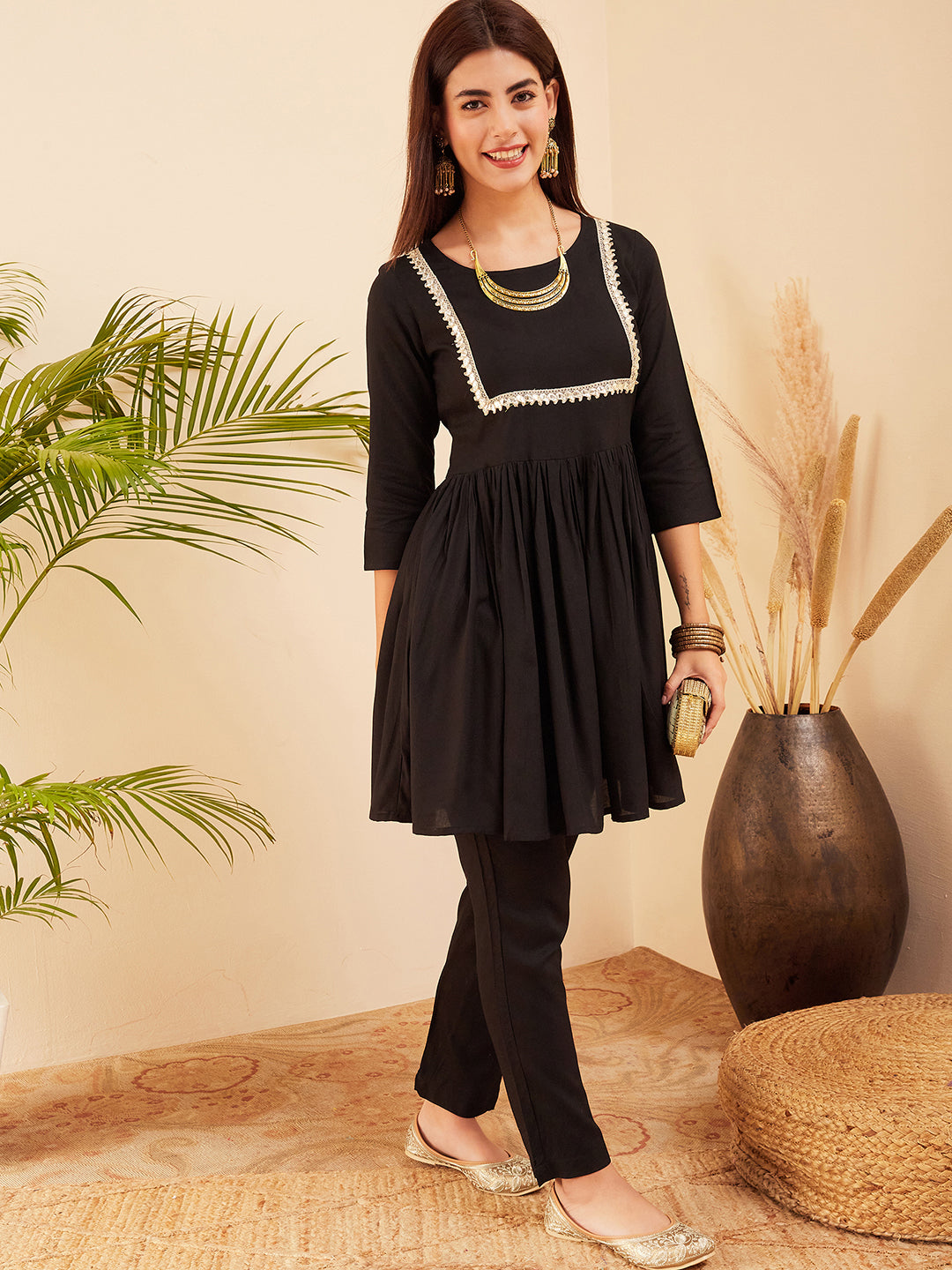 The Top Bottom Set is crafted from best of Indian fabrics. Style it with Oxidised jewelery and a sleek pair of shoes and you are good to go for any outing Hand Wash Only Seperately.