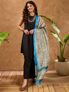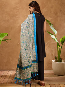 Black Silk Boho Blue Madhubani Kurta Set Kurta Set