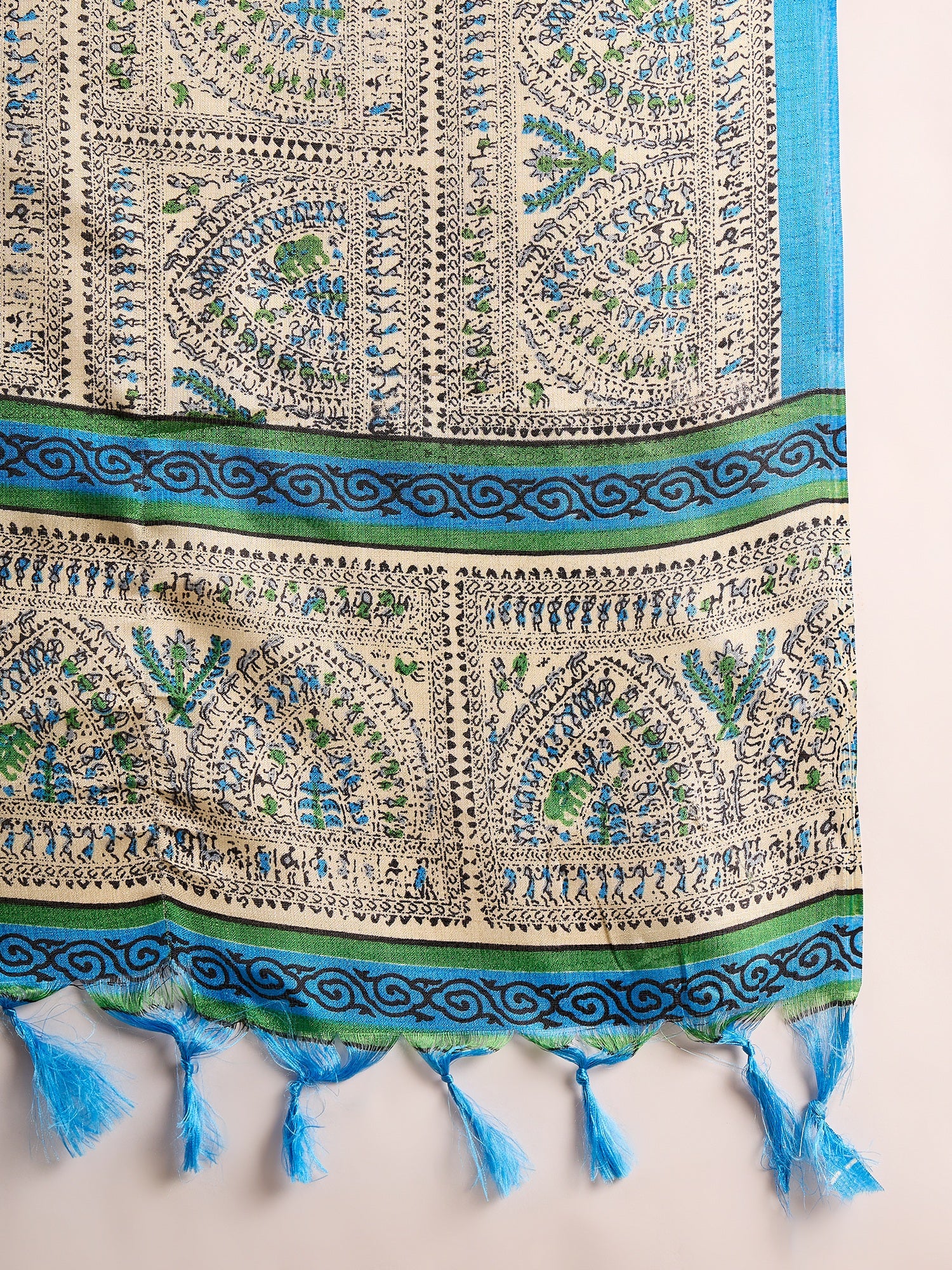 Placeholder Black Silk Boho Blue Madhubani Kurta Set Kurta Set - InWeave