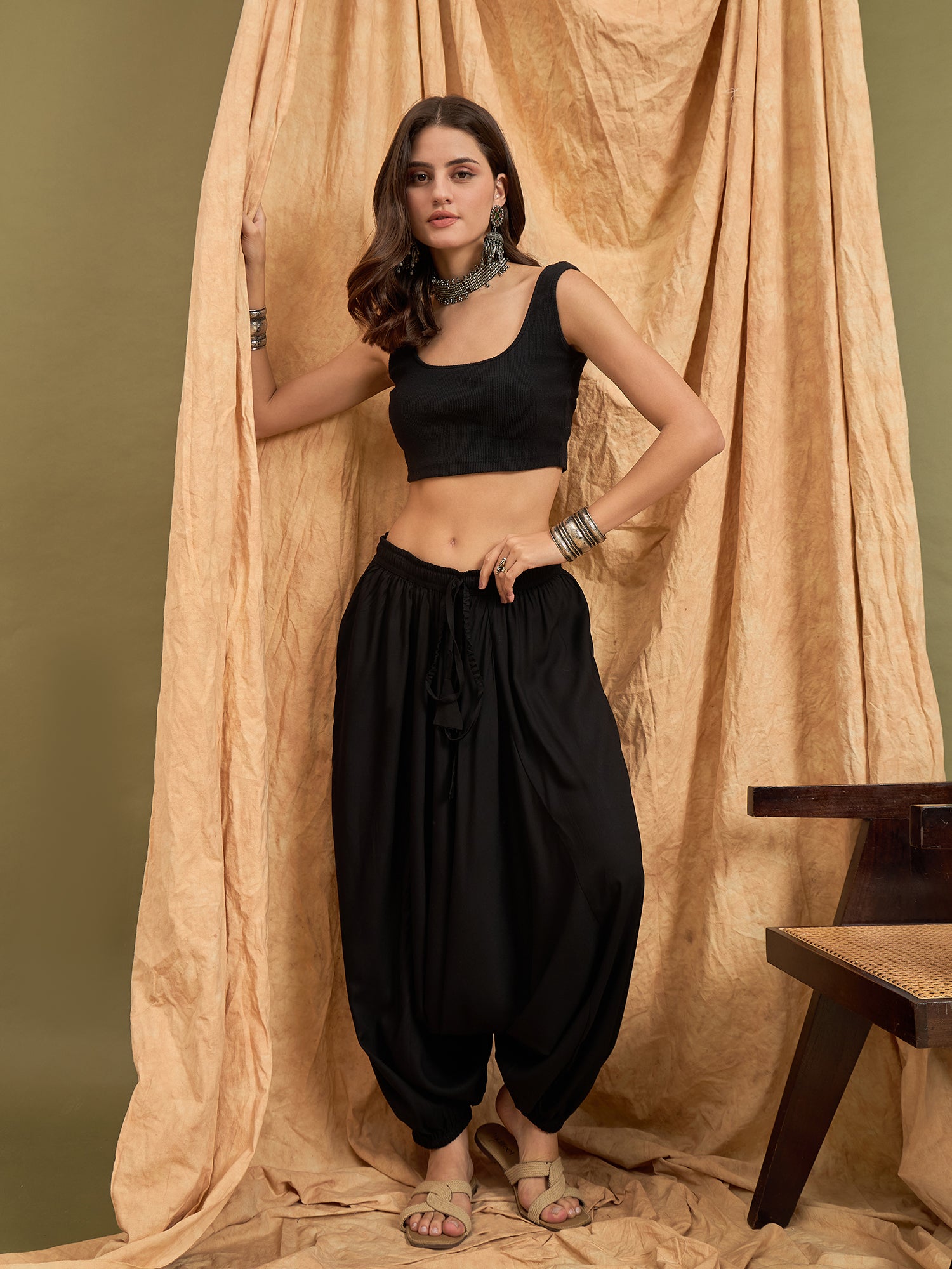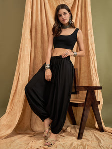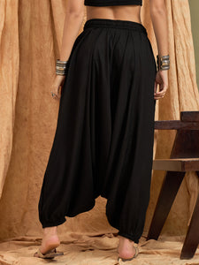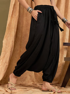 A vibrant and bold choice, these fuchsia solid harem pants offer a striking pop of color. With a relaxed, drop-crotch fit, these pants provide comfort and flexibility. Perfect for casual outings or a laid-back yet stylish look.