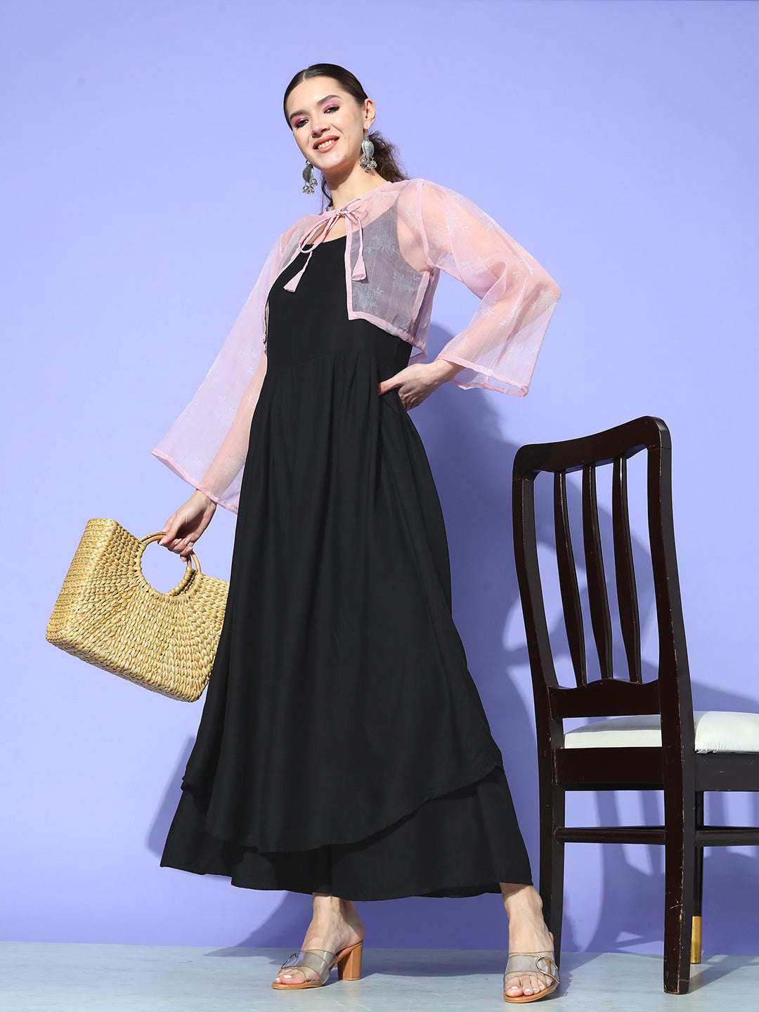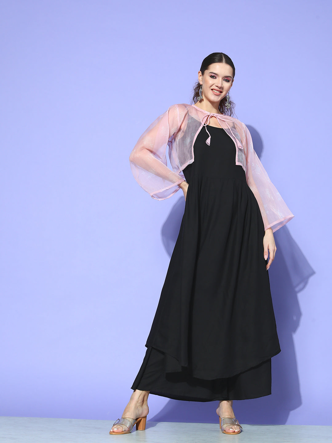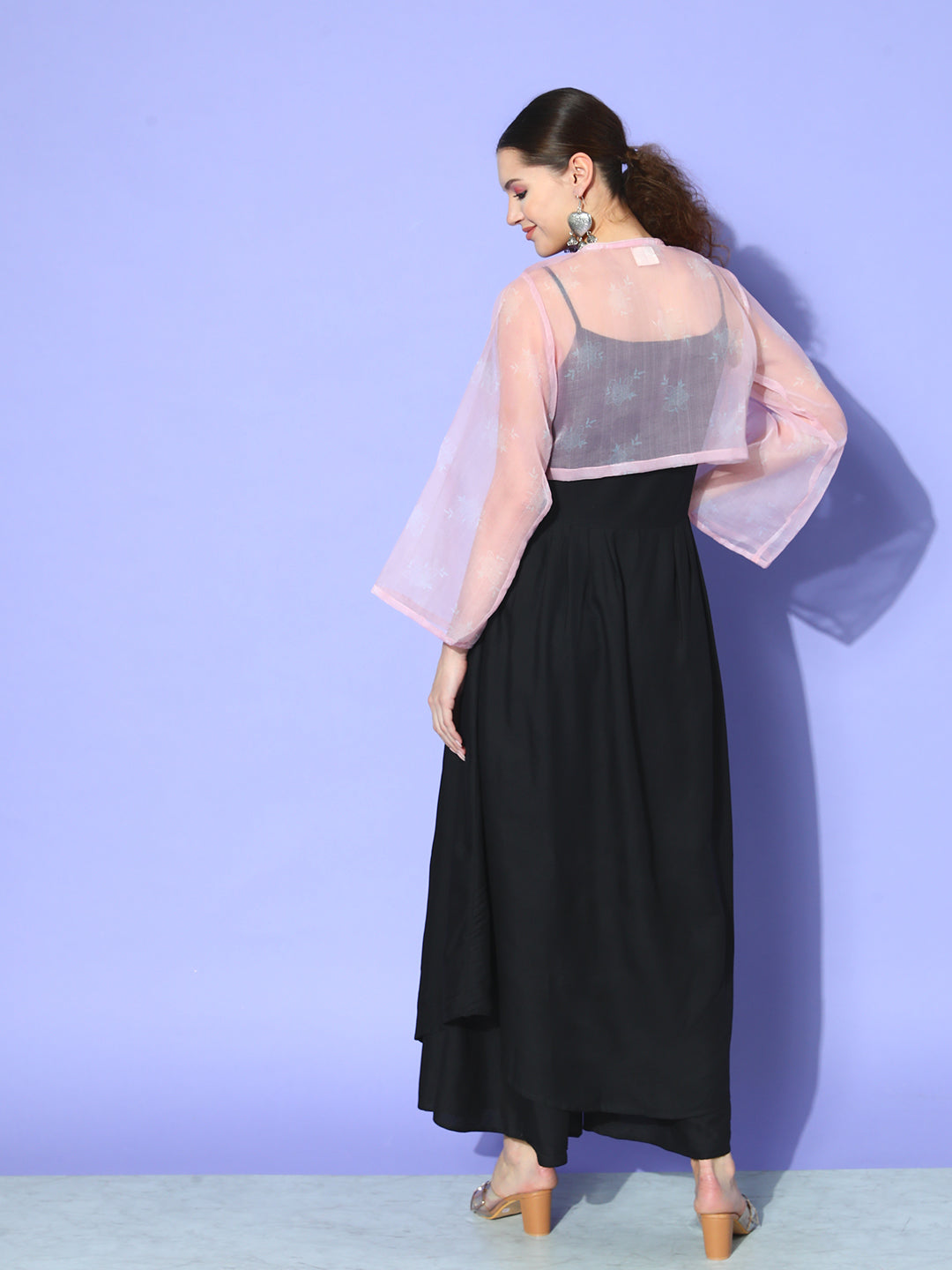 Shrug, if in, the set, is of free size upto 42 inches (106.7 cms)