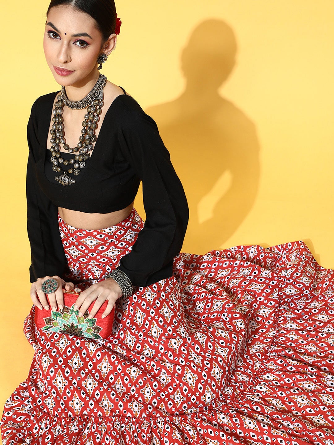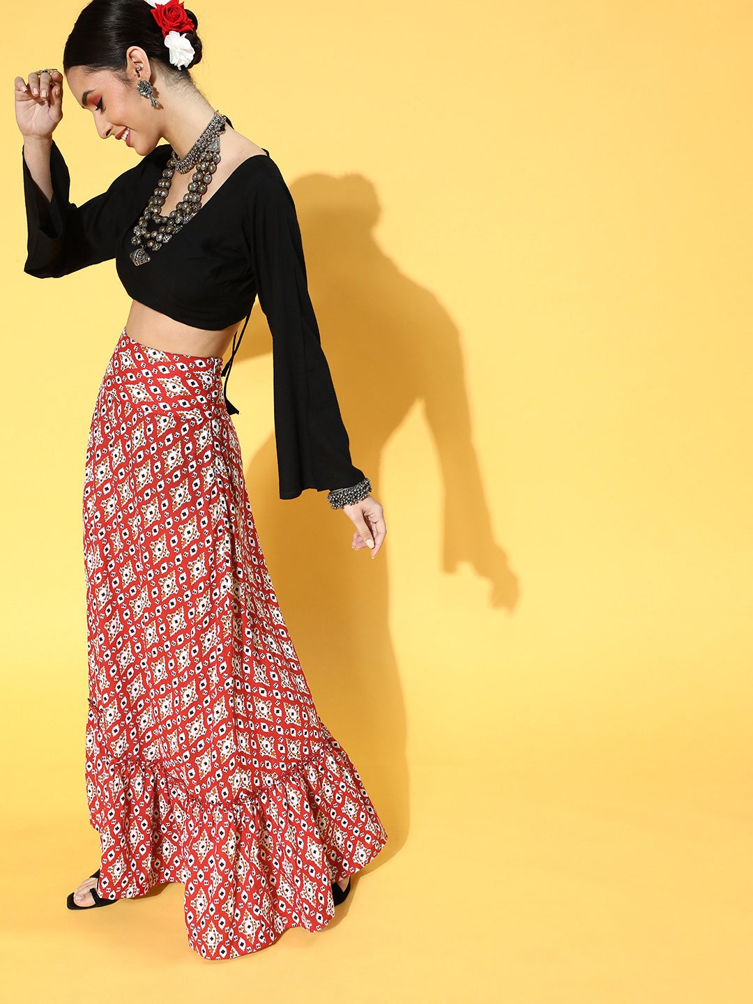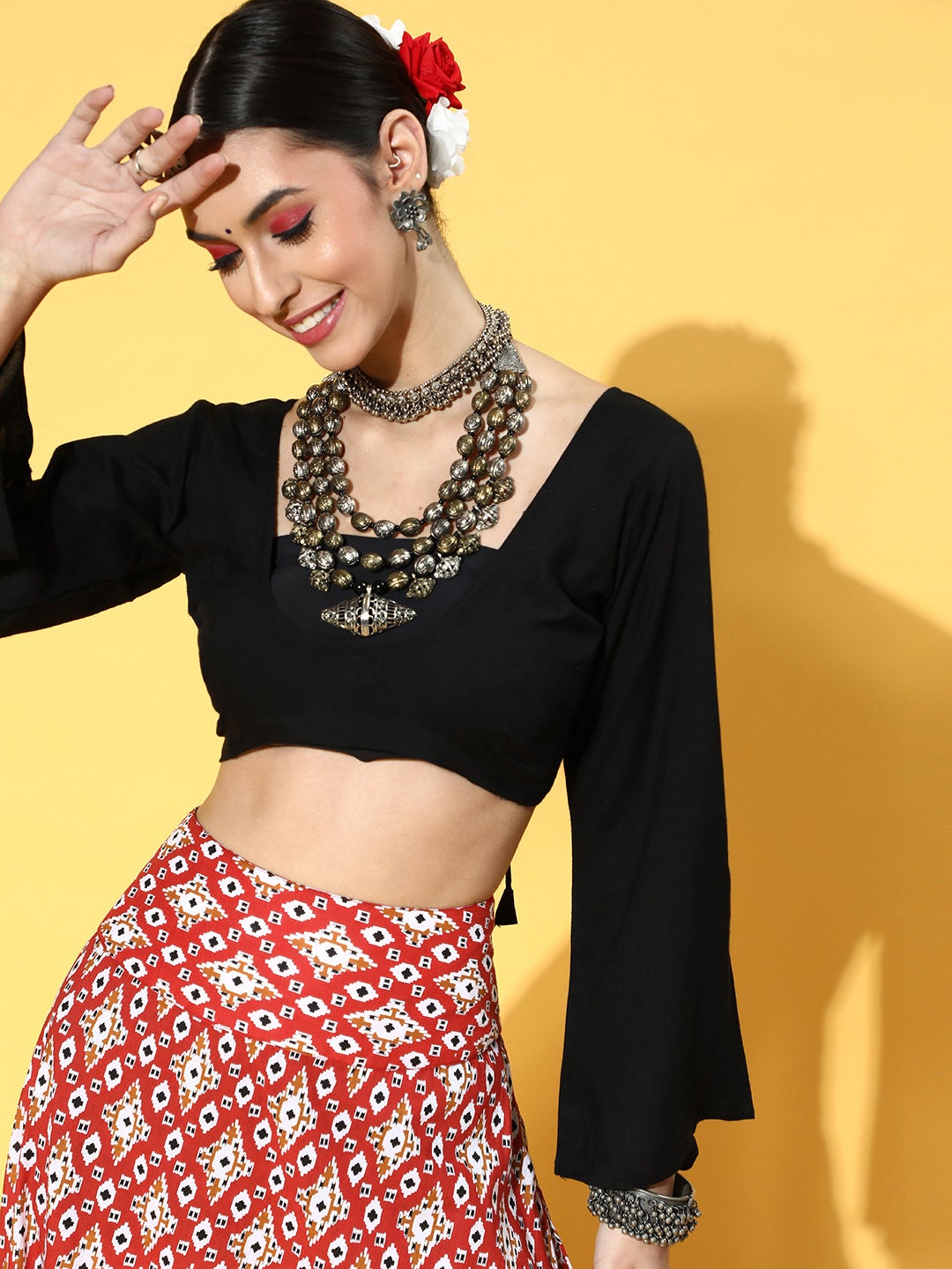 The Set is crafted from best of Indian fabrics. Style it with Oxidised jewelery and juttis and you are good to go for any outing Hand Wash Only Seperately.