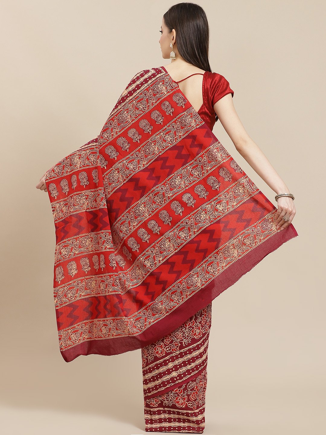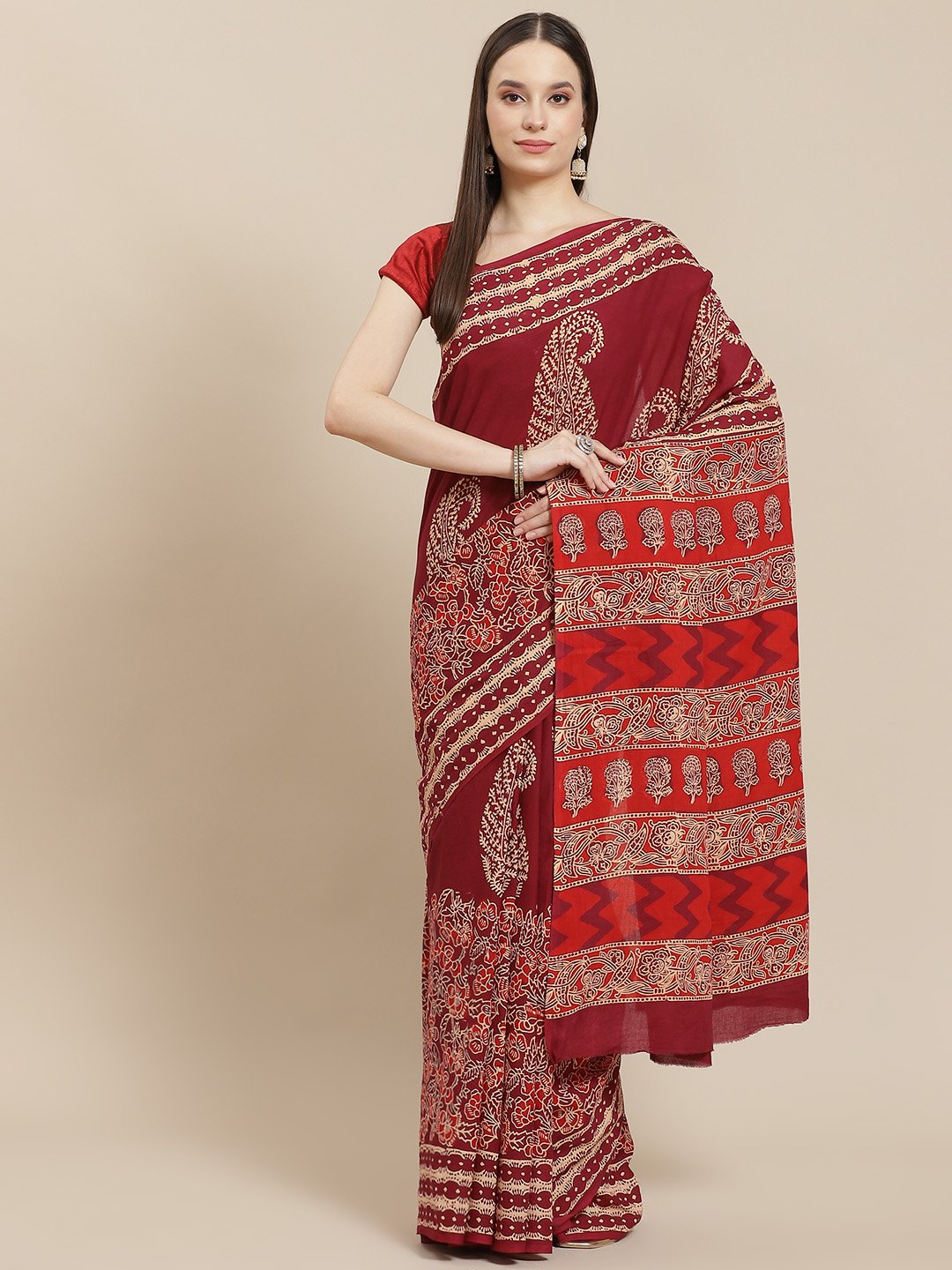 Our Block Printed Sarees, inspired by Indian Crafts. A stylish offerring for any family function or a get together of friends Fabric used : Pure Cotton. Dry Clean Only. This Saree comes with an un-stitched blouse