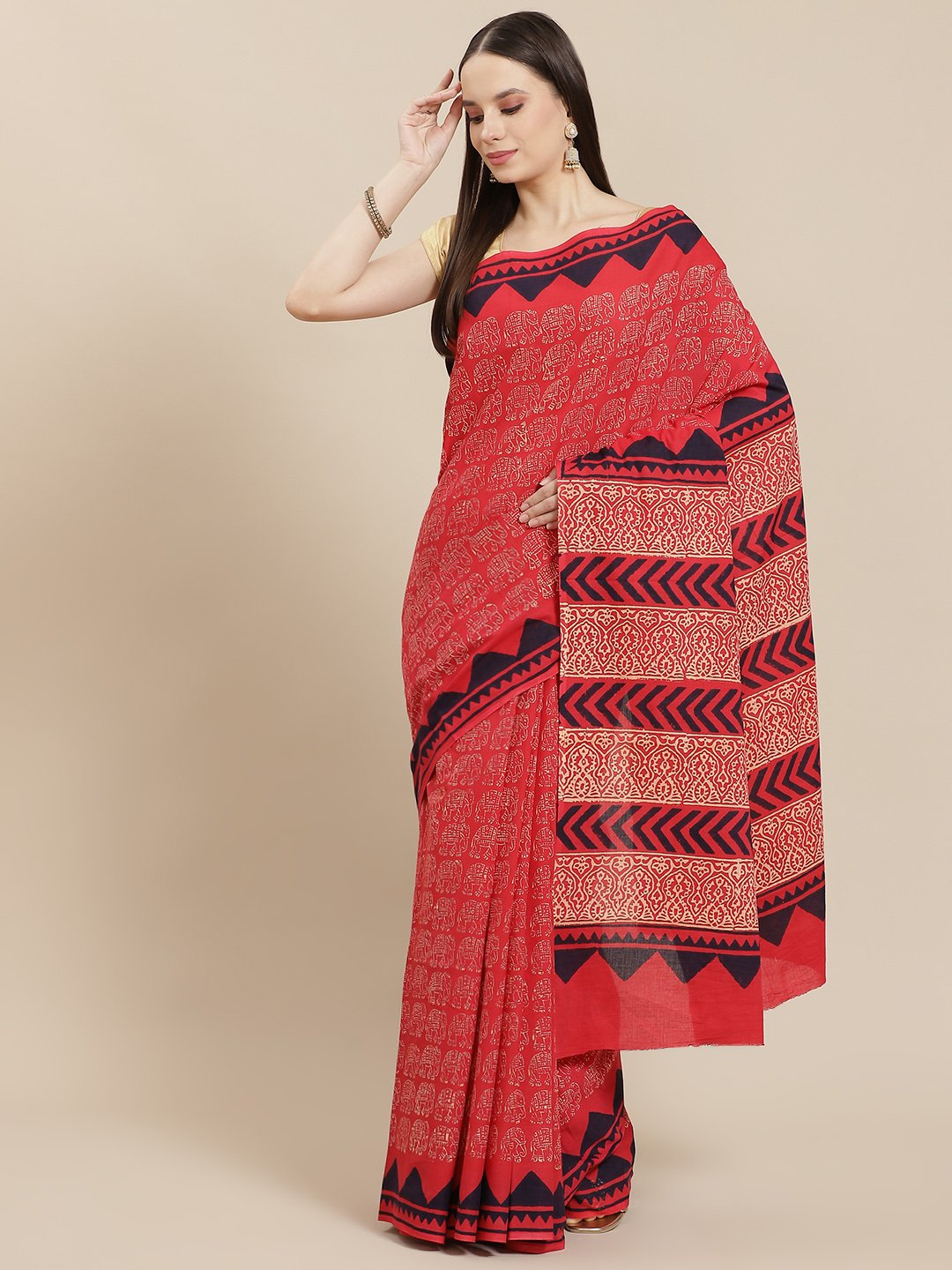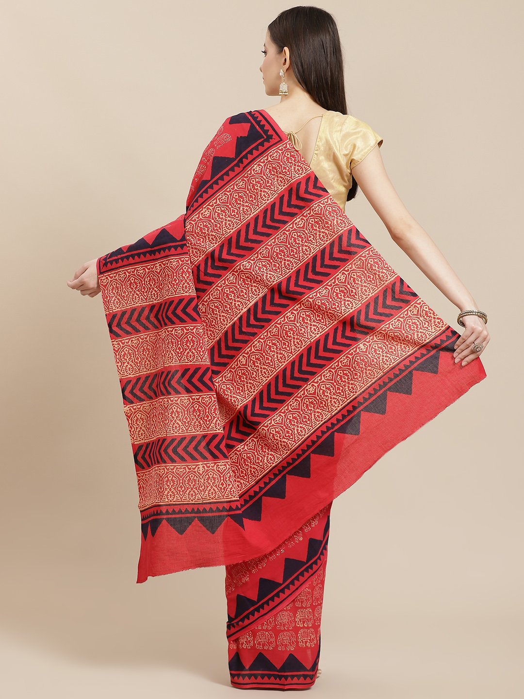 Our Block Printed Sarees, inspired by Indian Crafts. A stylish offerring for any family function or a get together of friends Fabric used : Pure Cotton. Dry Clean Only. This Saree comes with an un-stitched blouse