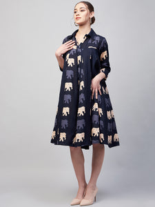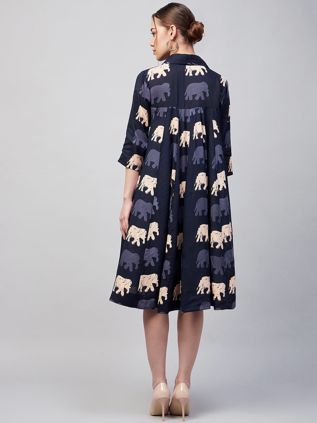 Placeholder Blue Elephant Print Flared Dress - InWeave