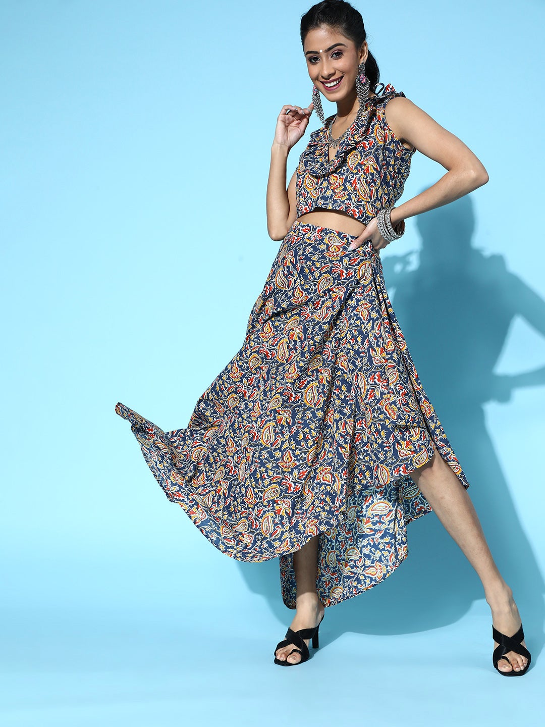 The Top Bottom Set is crafted from best of Indian fabrics. Style it with Oxidised jewelery and a sleek pair of shoes and you are good to go for any outing Hand Wash Only Seperately.