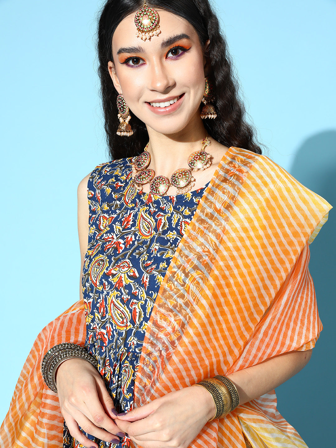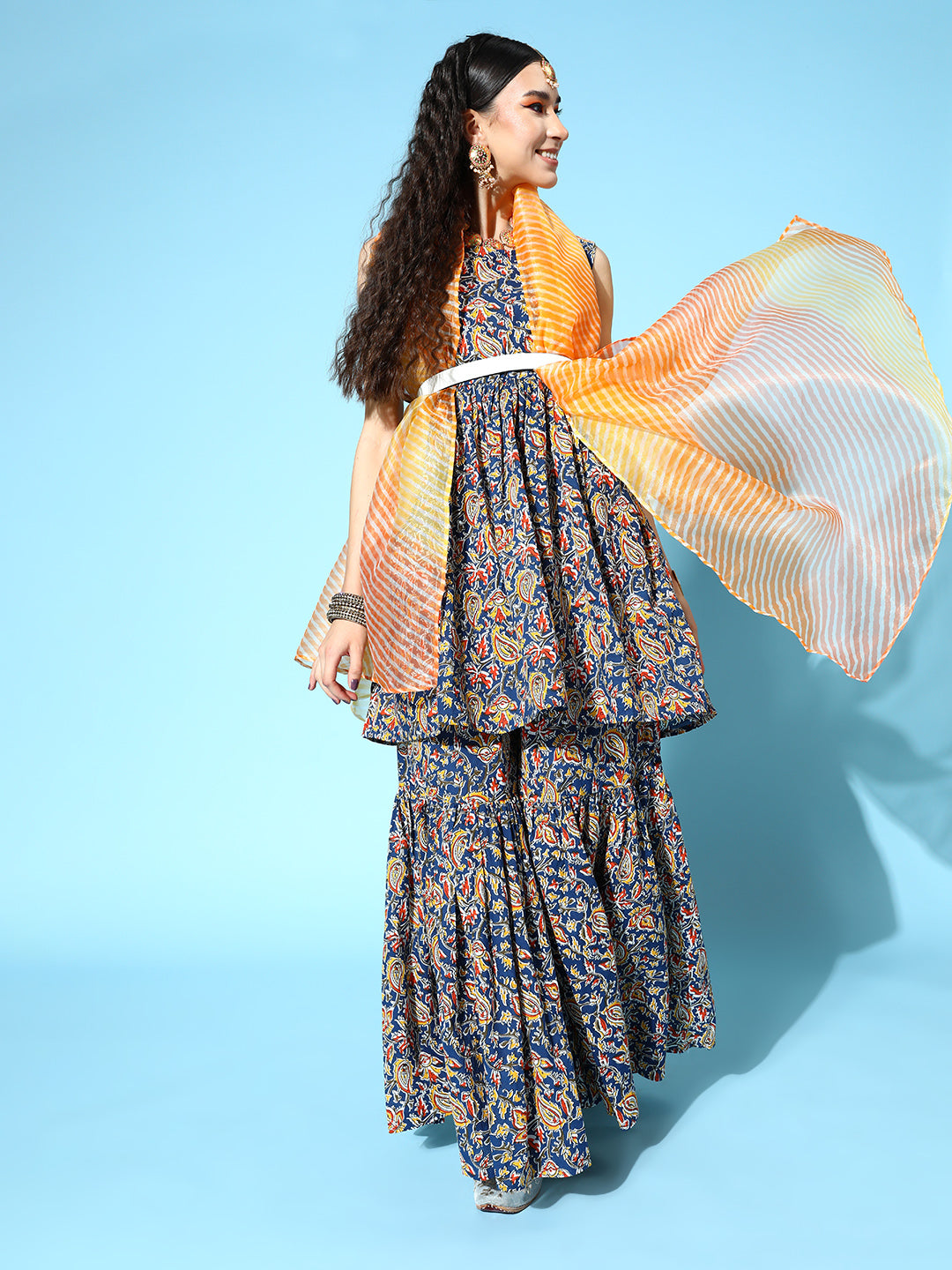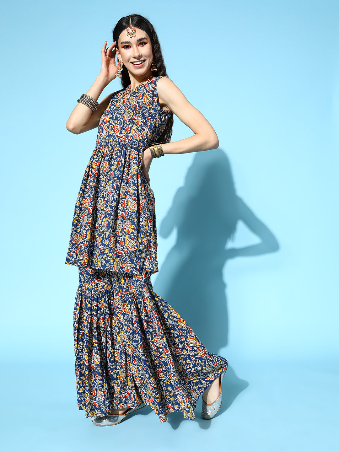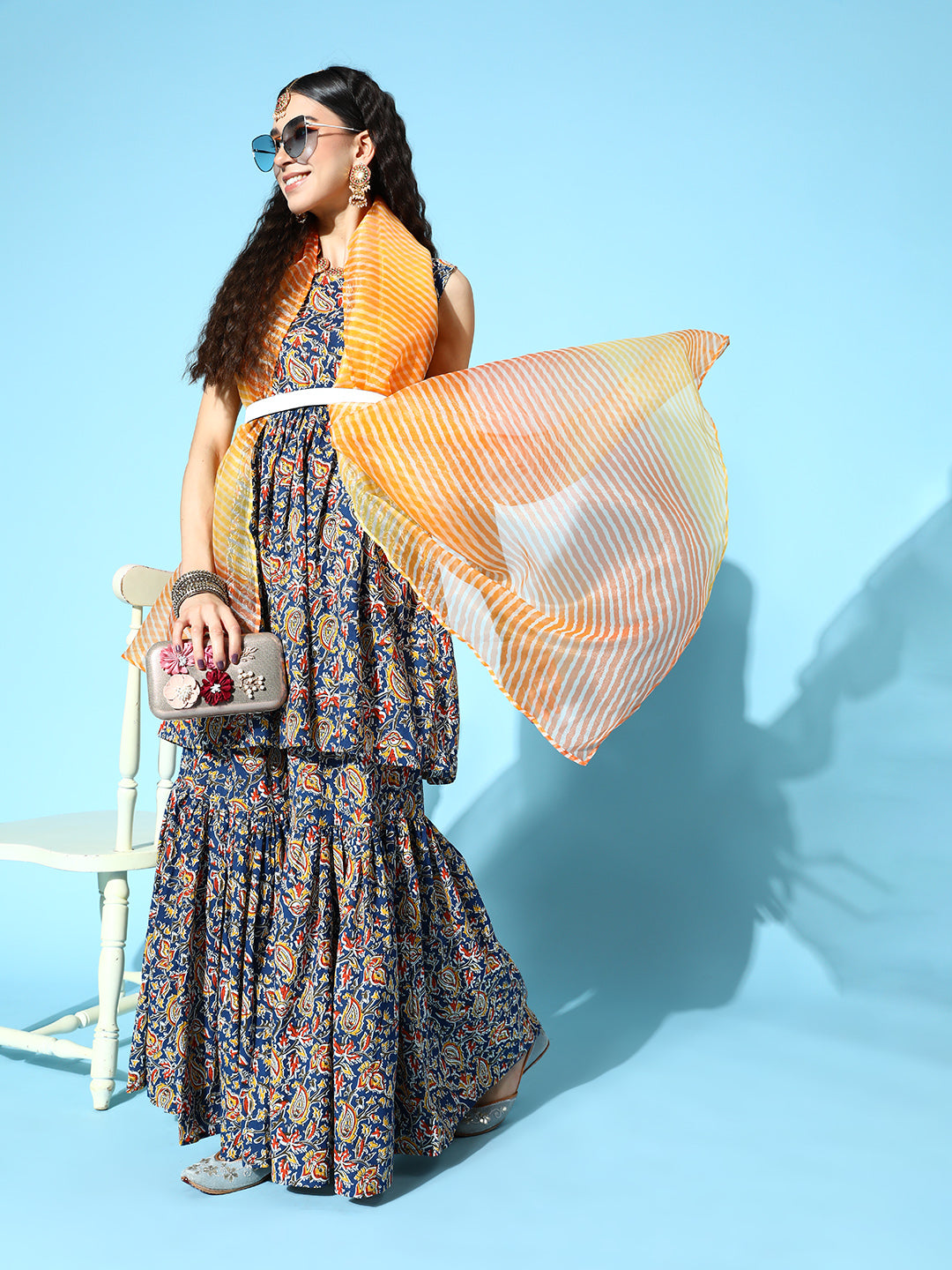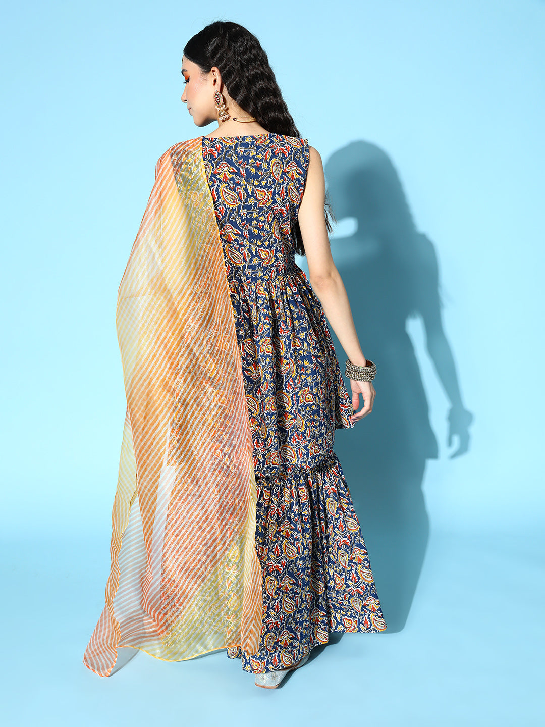 The Set is crafted from best of Indian fabrics. Style it with Oxidised jewelery and juttis and you are good to go for any outing Hand Wash Only Seperately.