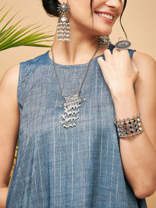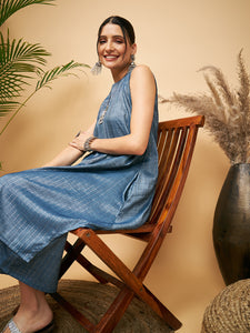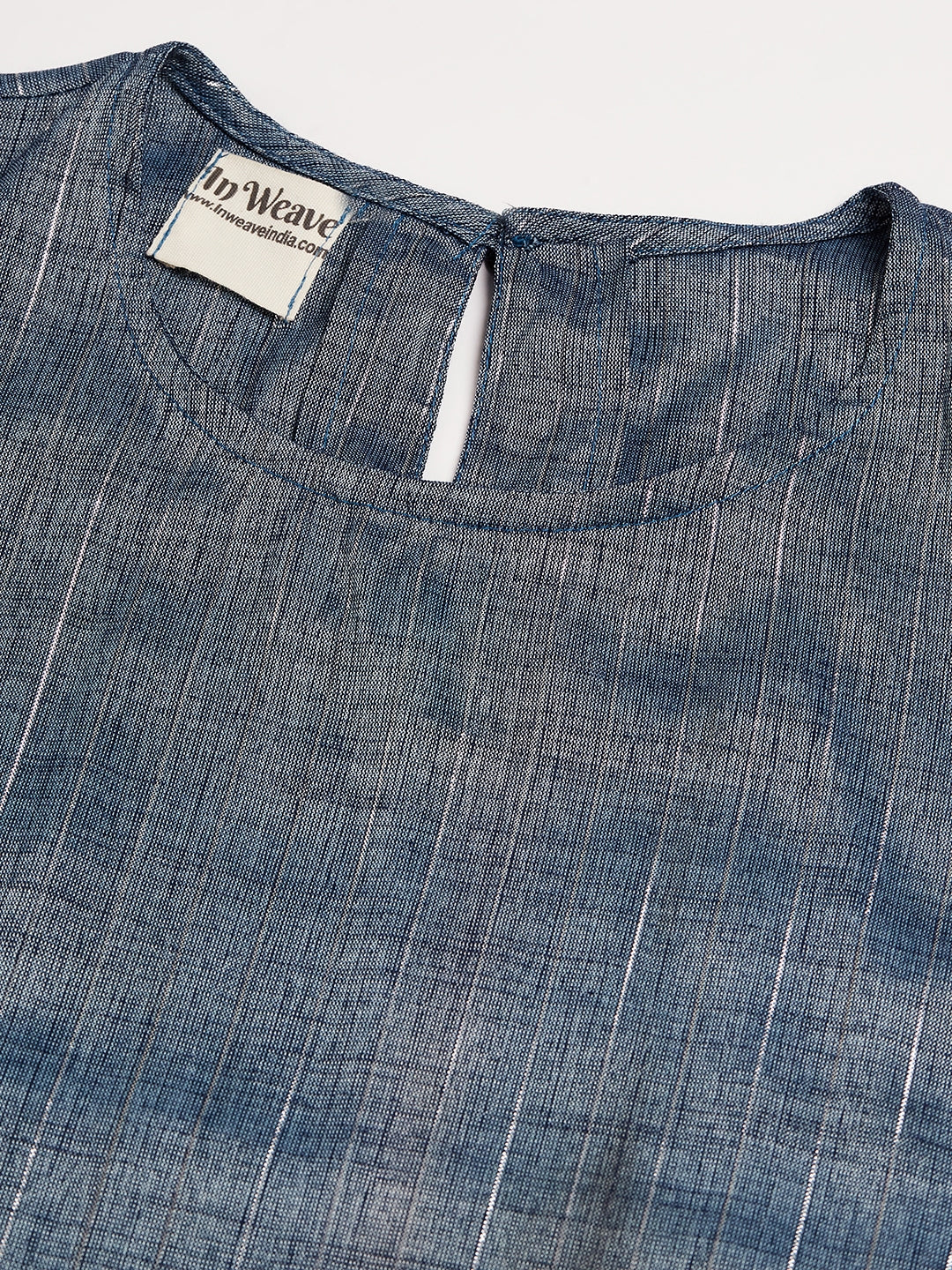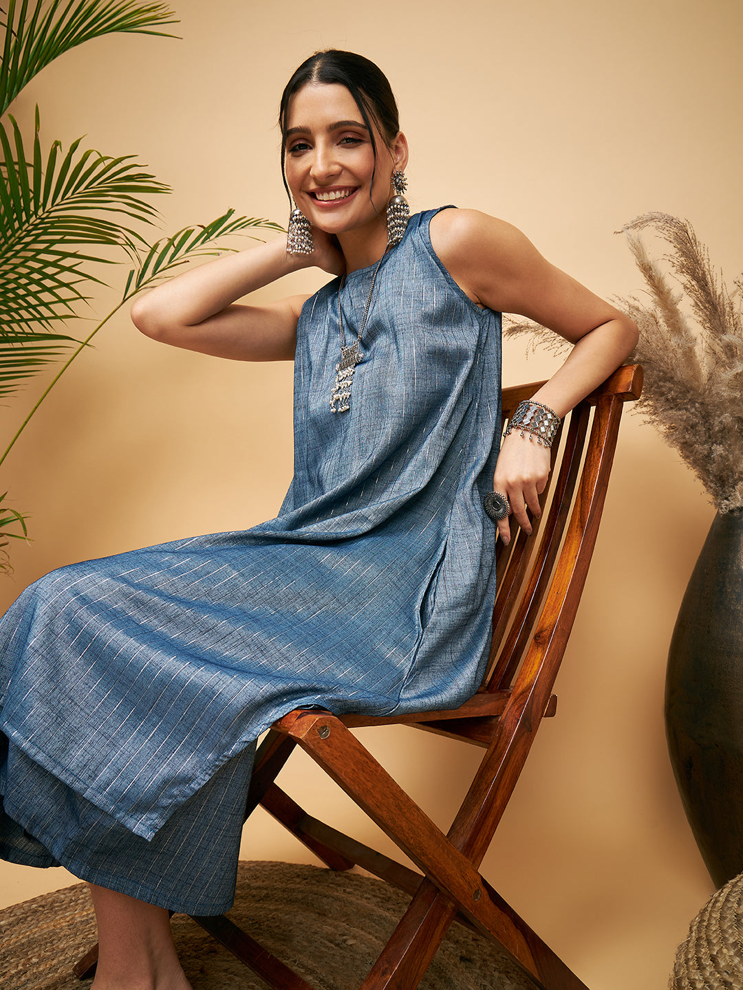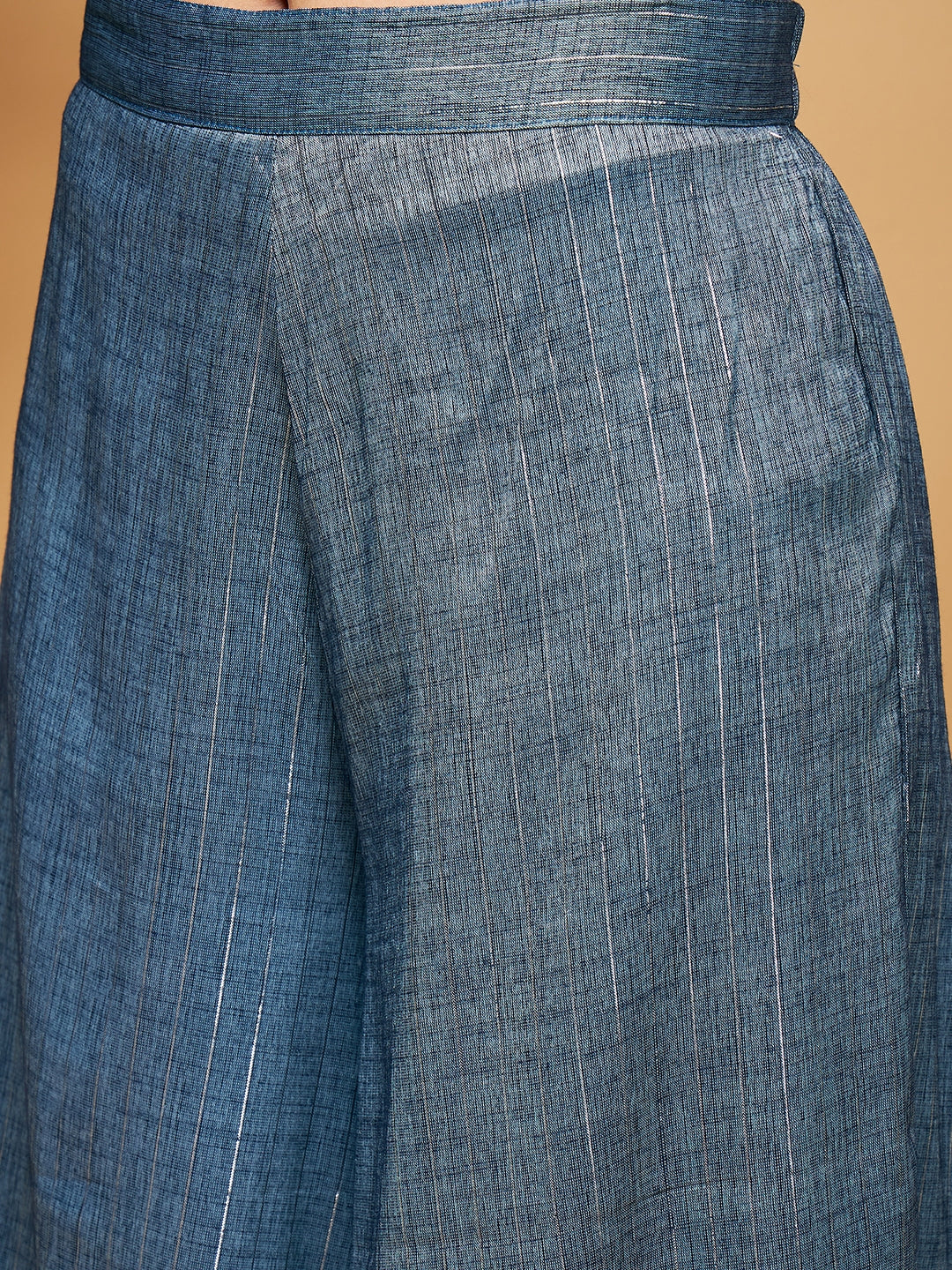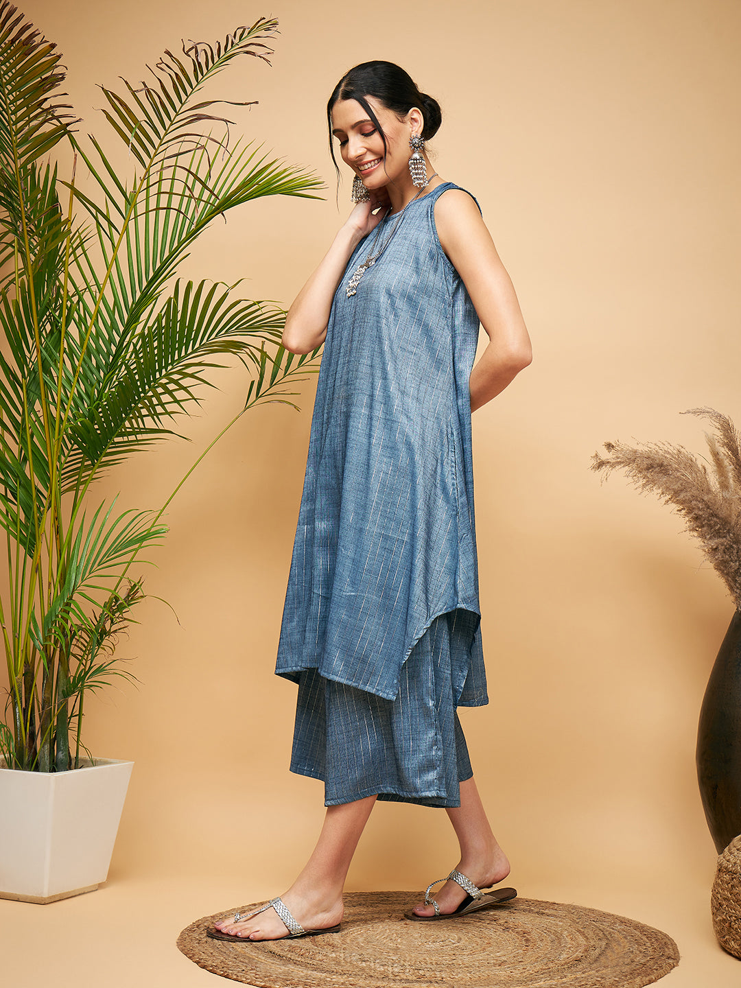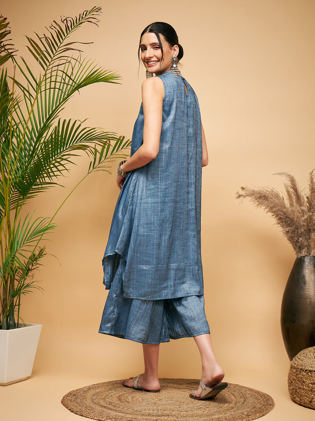 Placeholder Blue Lurex Short Pallazo Kurta Set - InWeave