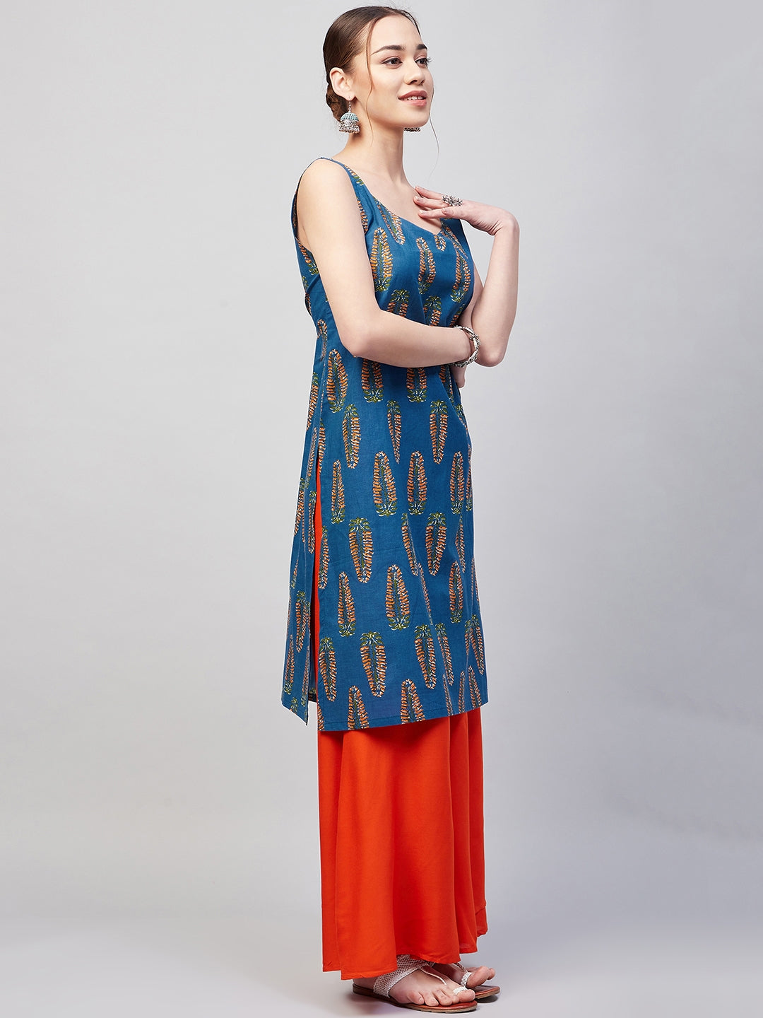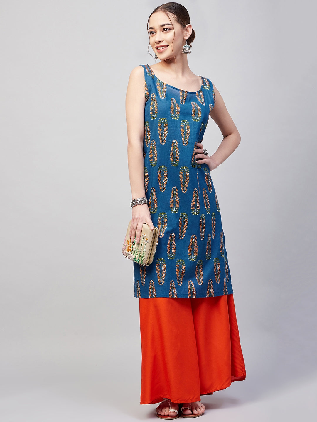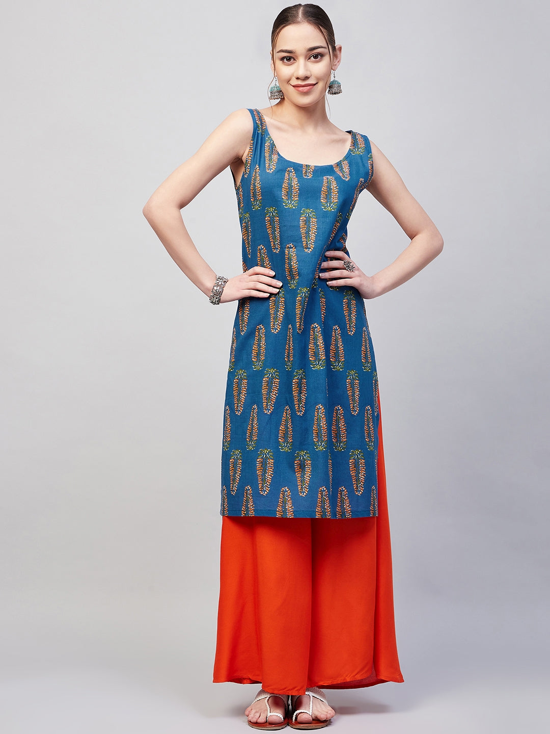 The Kurta is crafted from best of Indian fabrics. Style it with Oxidised jewelery and juttis and you are good to go for any outing Hand Wash Only Seperately.