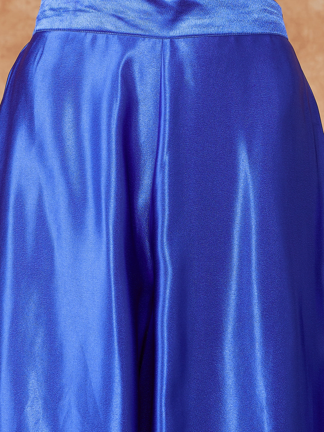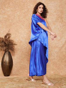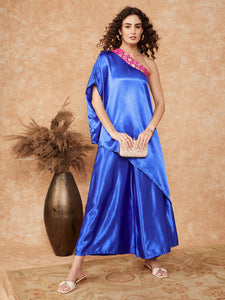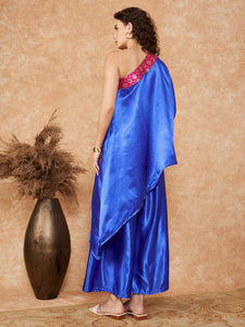 Blue Pink Brocade Satin Oneshoulder Kurta Set