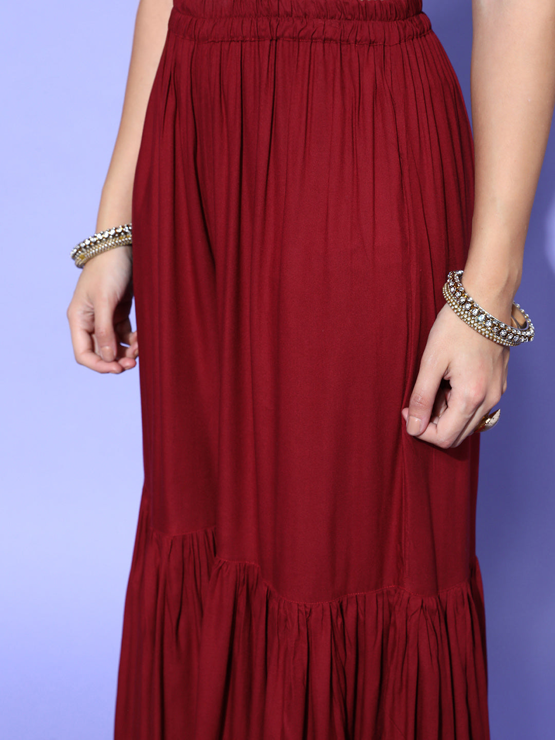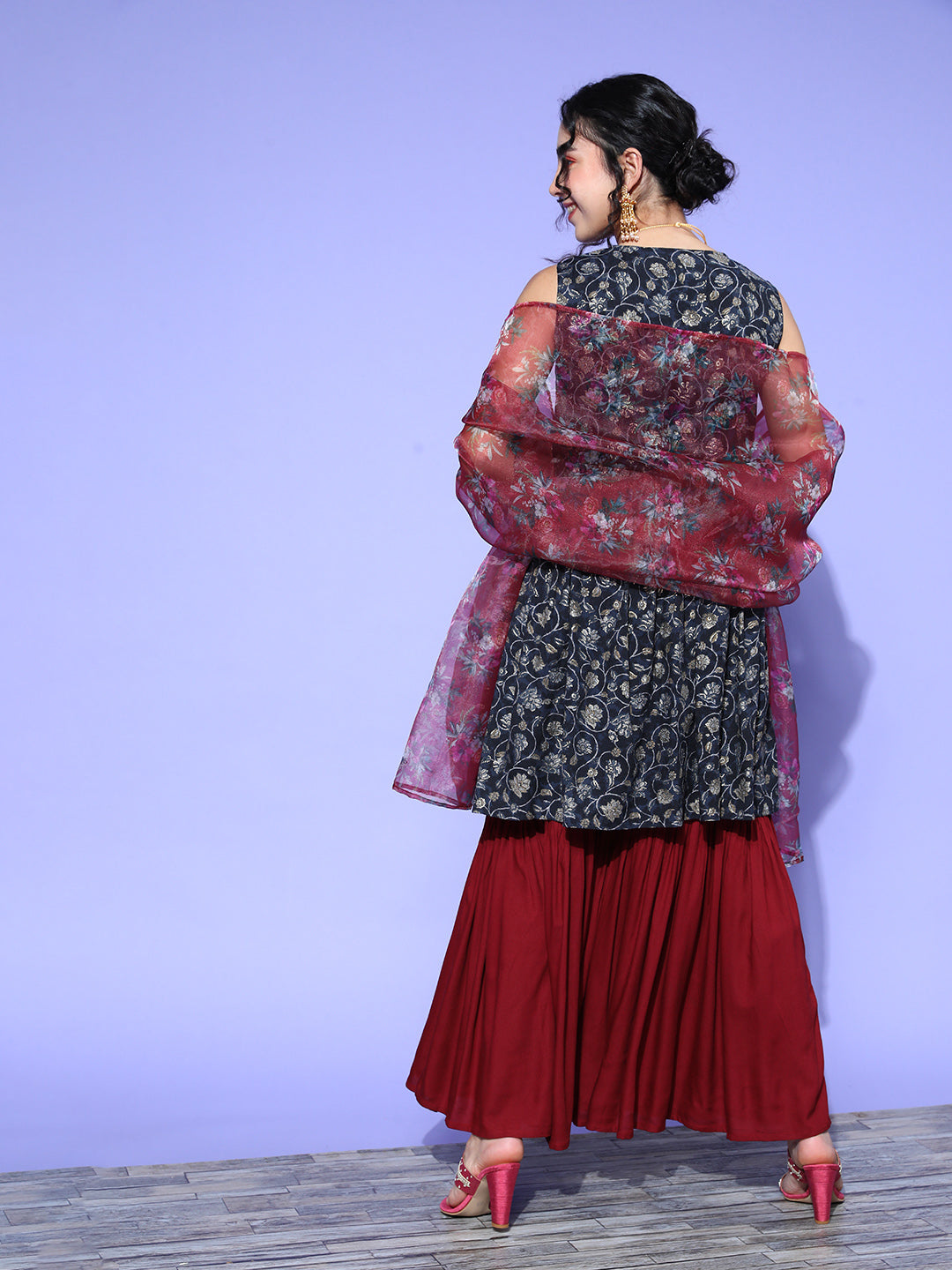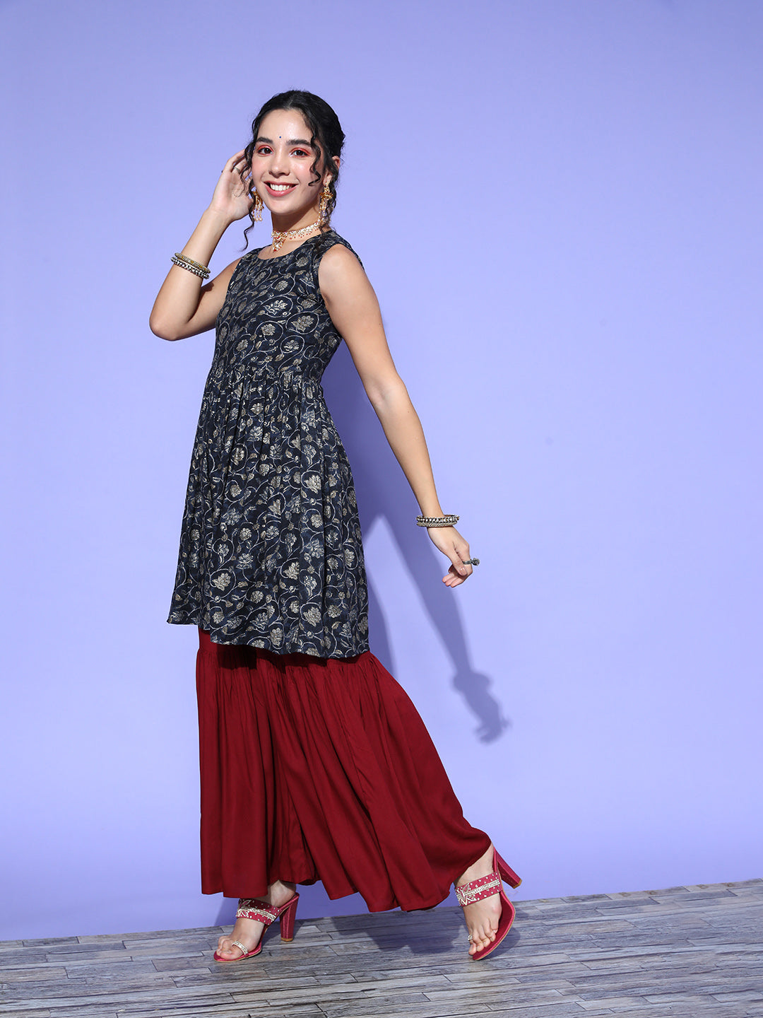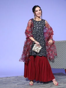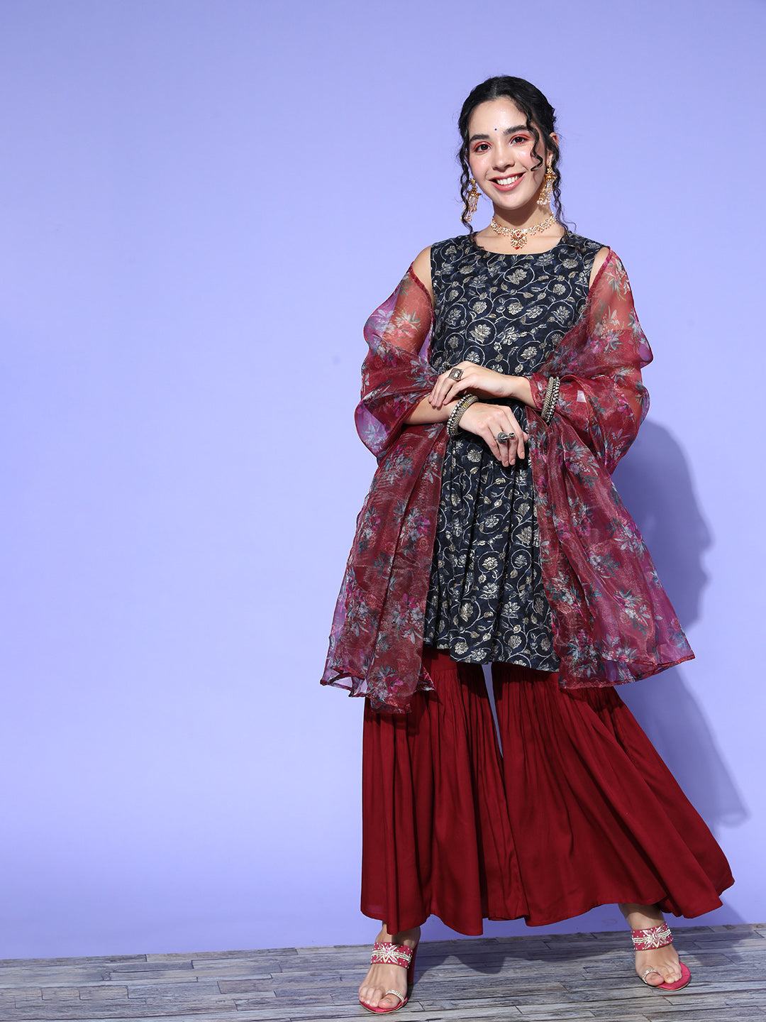 The Set is crafted from best of Indian fabrics. Style it with Oxidised jewelery and juttis and you are good to go for any outing Hand Wash Only Seperately.