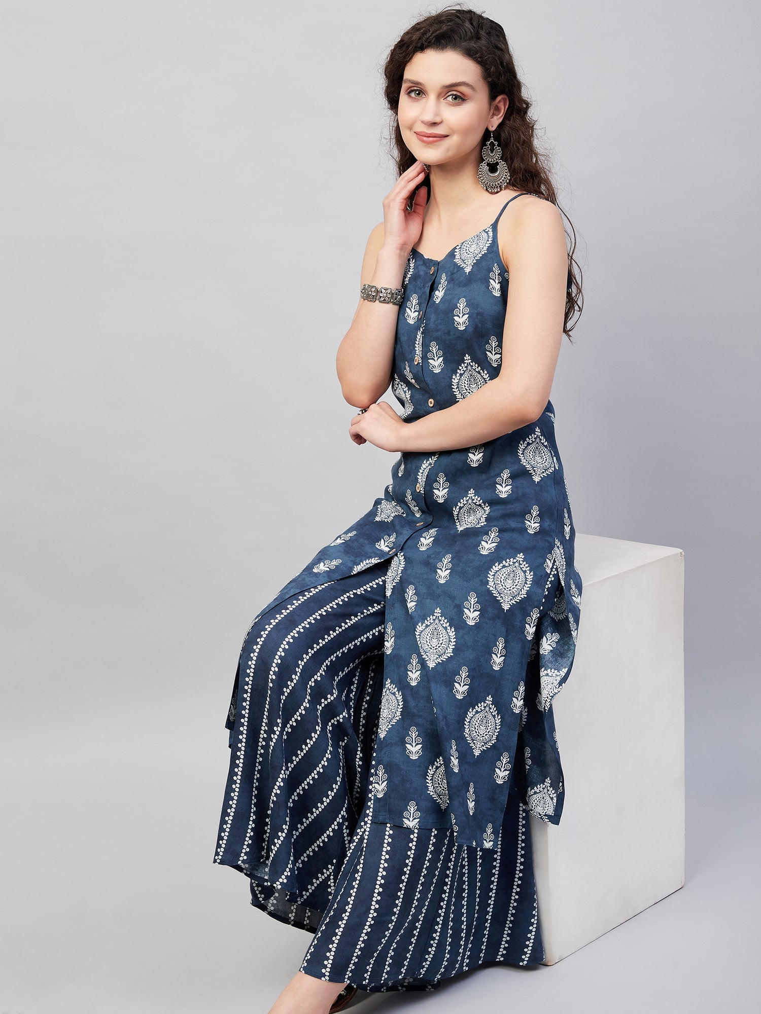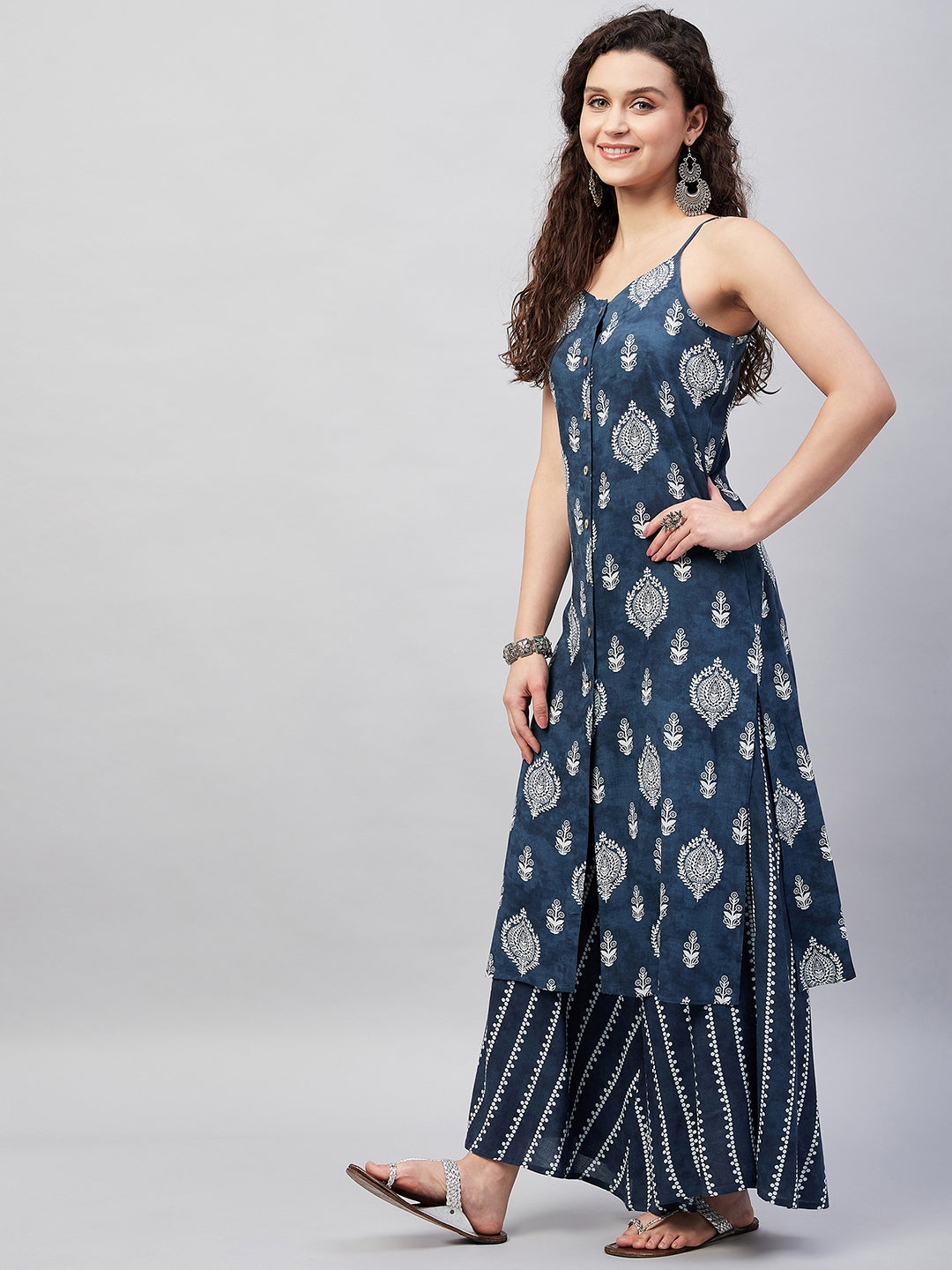 The Set is crafted from best of Indian fabrics. Style it with Oxidised jewelery and juttis and you are good to go for any outing Hand Wash Only Seperately.