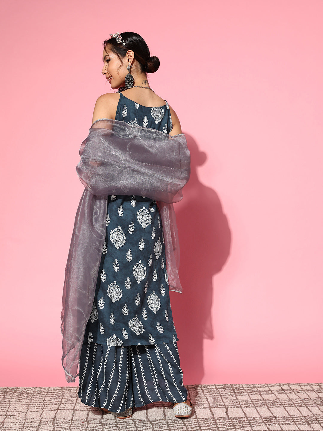 The Set is crafted from best of Indian fabrics. Style it with Oxidised jewelery and juttis and you are good to go for any outing Hand Wash Only Seperately.