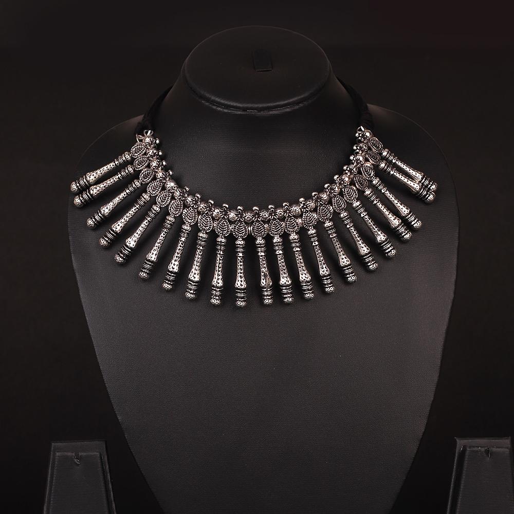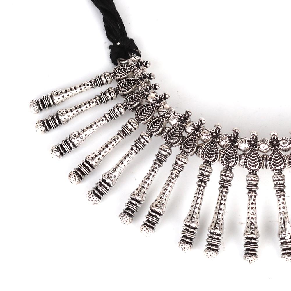 Impeccably crafted and nature inspired , one of our creation that will be remembered ! This German Silver Oxidised jewelry piece is one of a kind with its beautifully ornate details and the perfect size. This extraordinary neckpiece is so versatile that it can add to your heavy occasion wear outfits or just uplift your everyday kurta look.