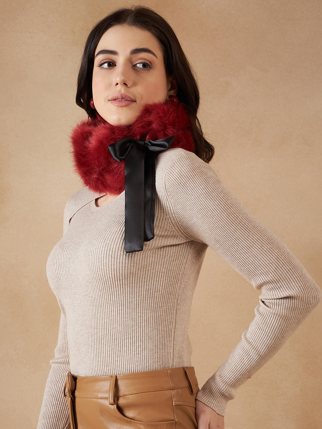 Stylish Fur Cape from InWeave can be worn two ways,wear it like a shawl or like a poncho for different looks. Product made of Acrylic. Dry Clean Recommended