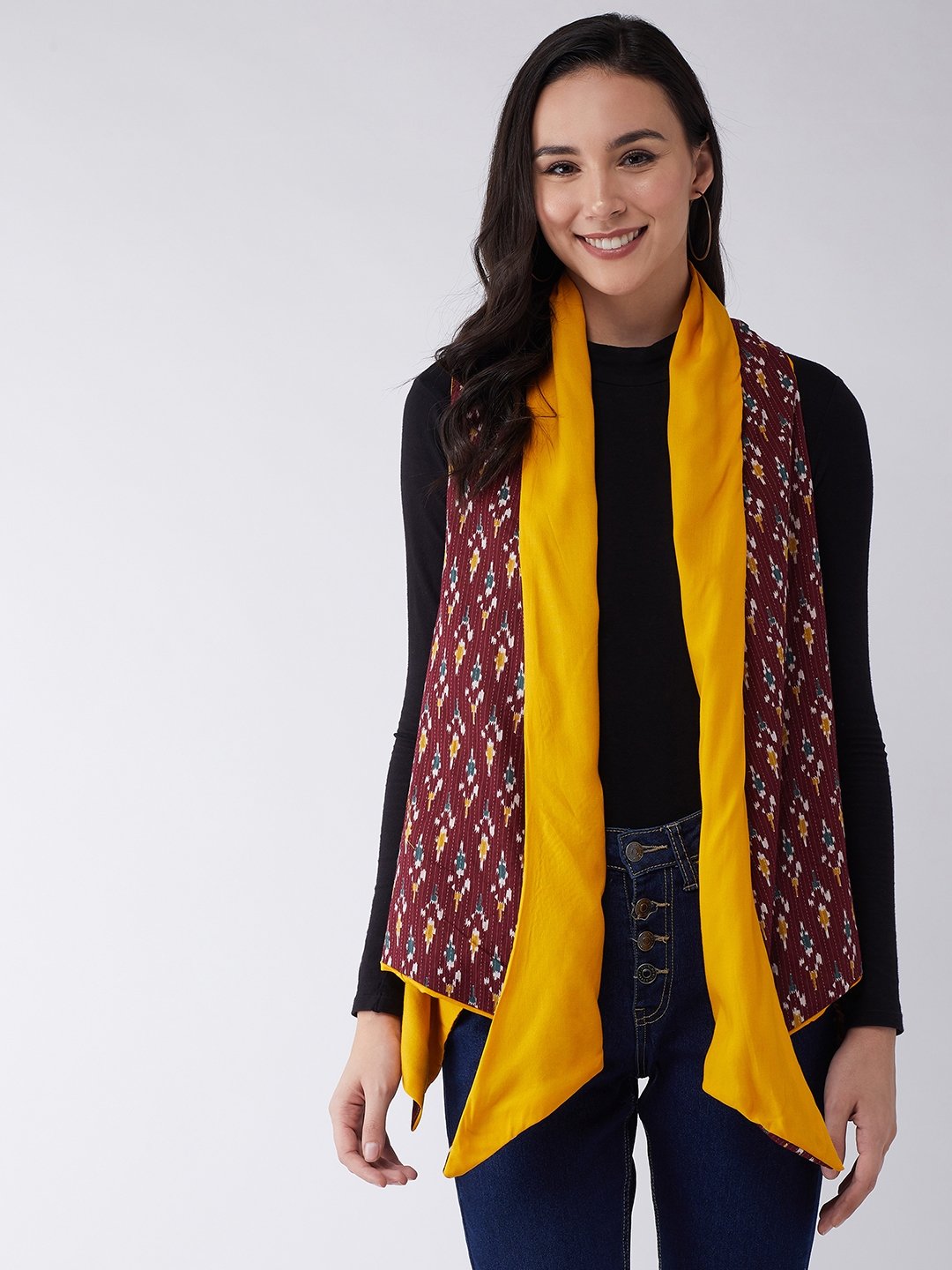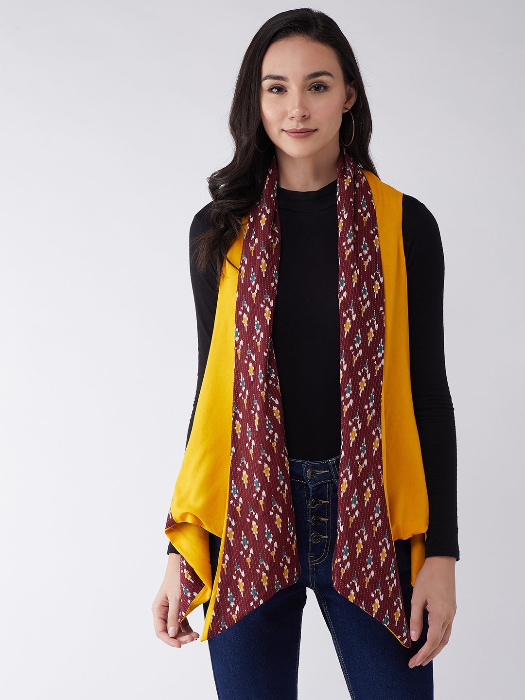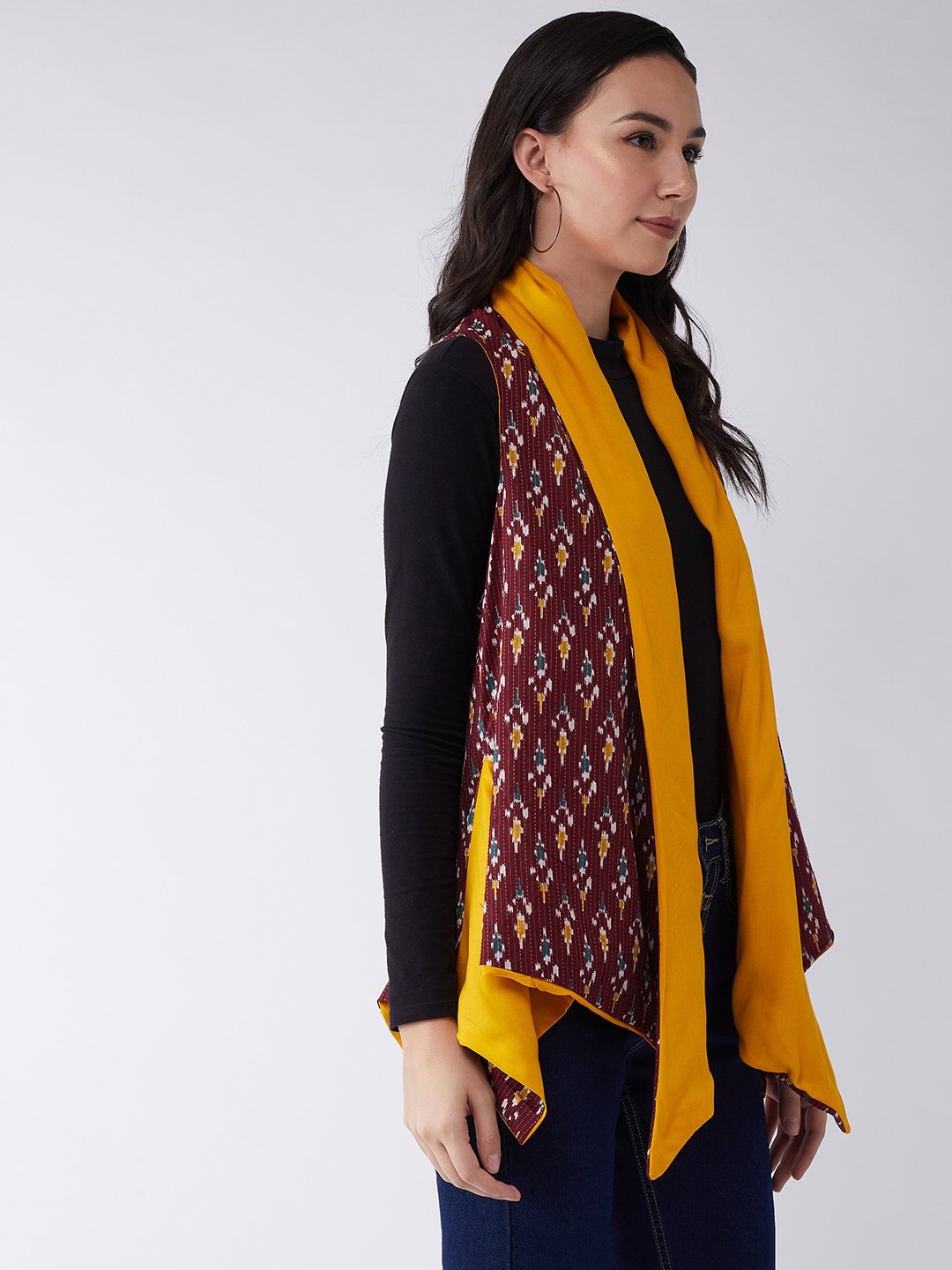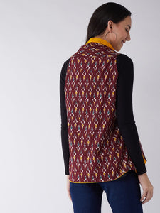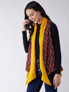 Feminine and stylish, this brown coloured Kantha Ikkat reversible shrug gives a major goal to fashionistas. Plate it with a tank top and skinny denims.