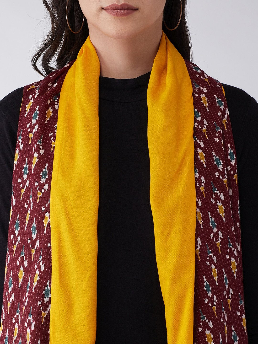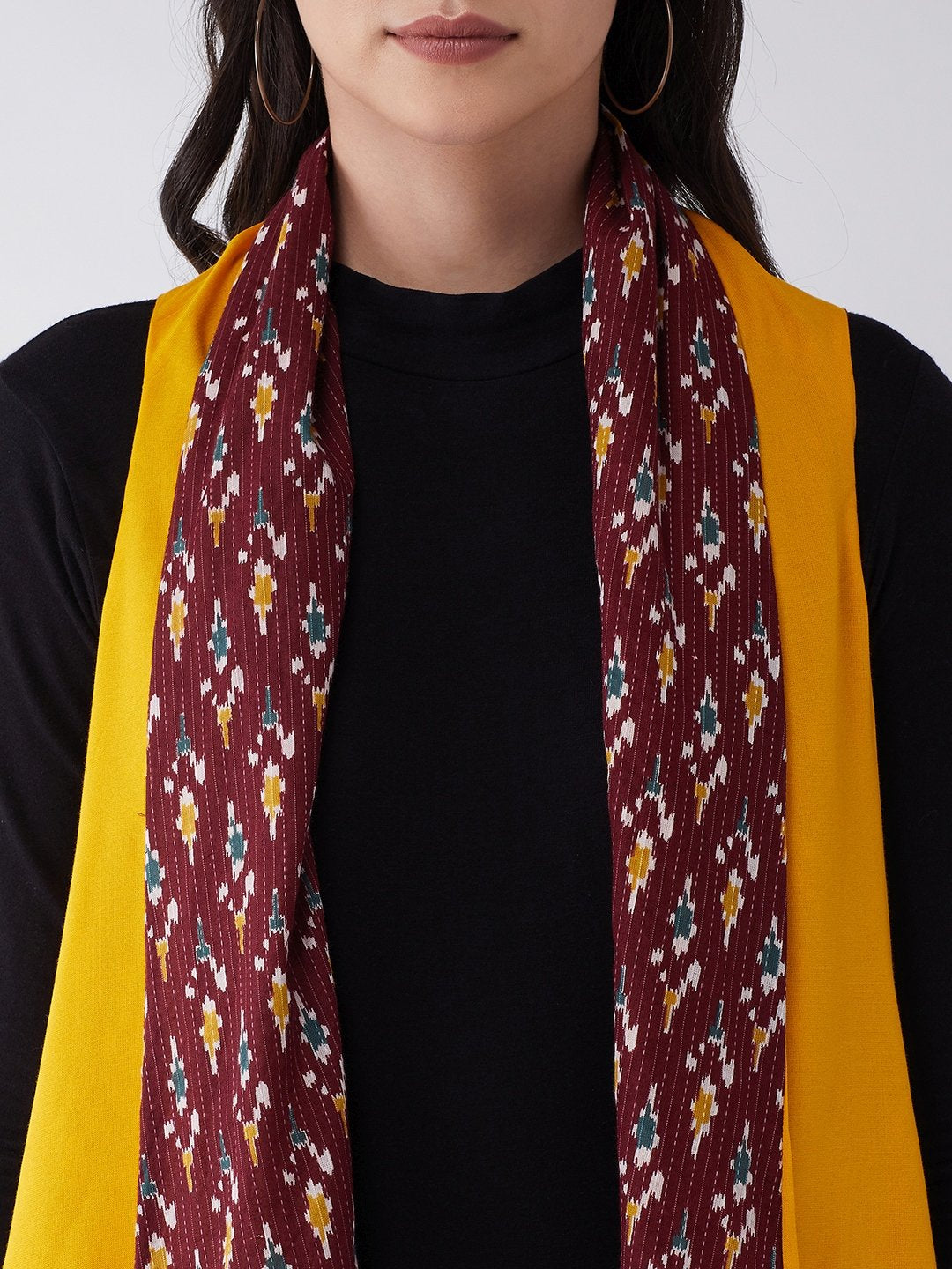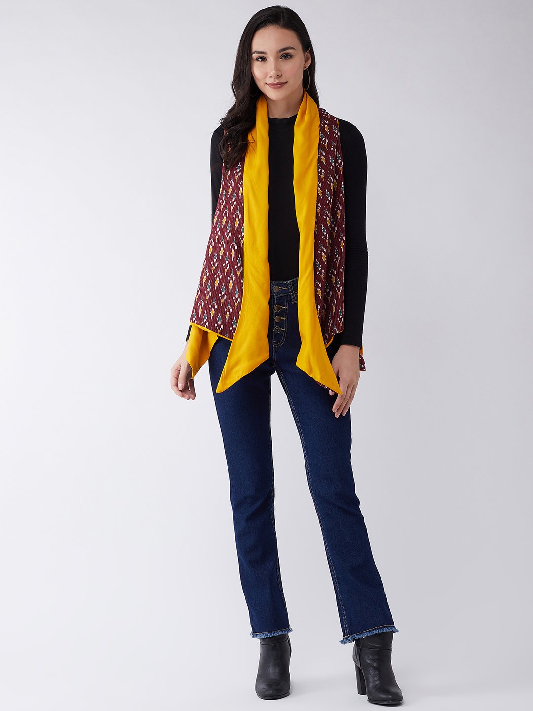 Feminine and stylish, this brown coloured Kantha Ikkat reversible shrug gives a major goal to fashionistas. Plate it with a tank top and skinny denims.