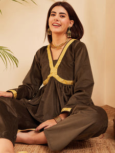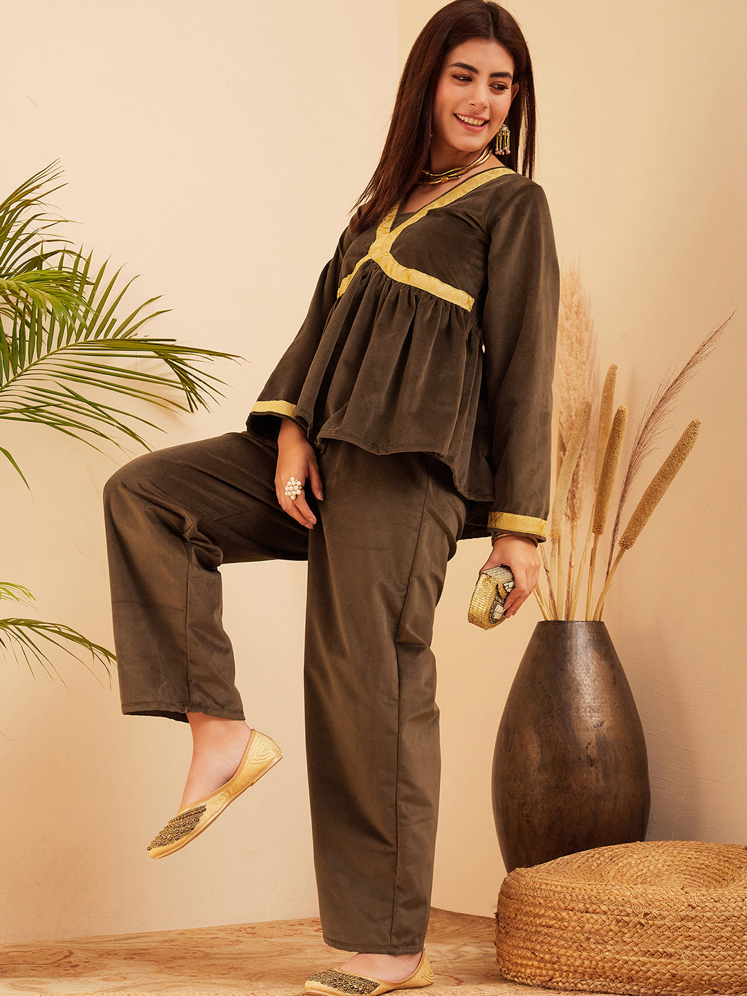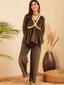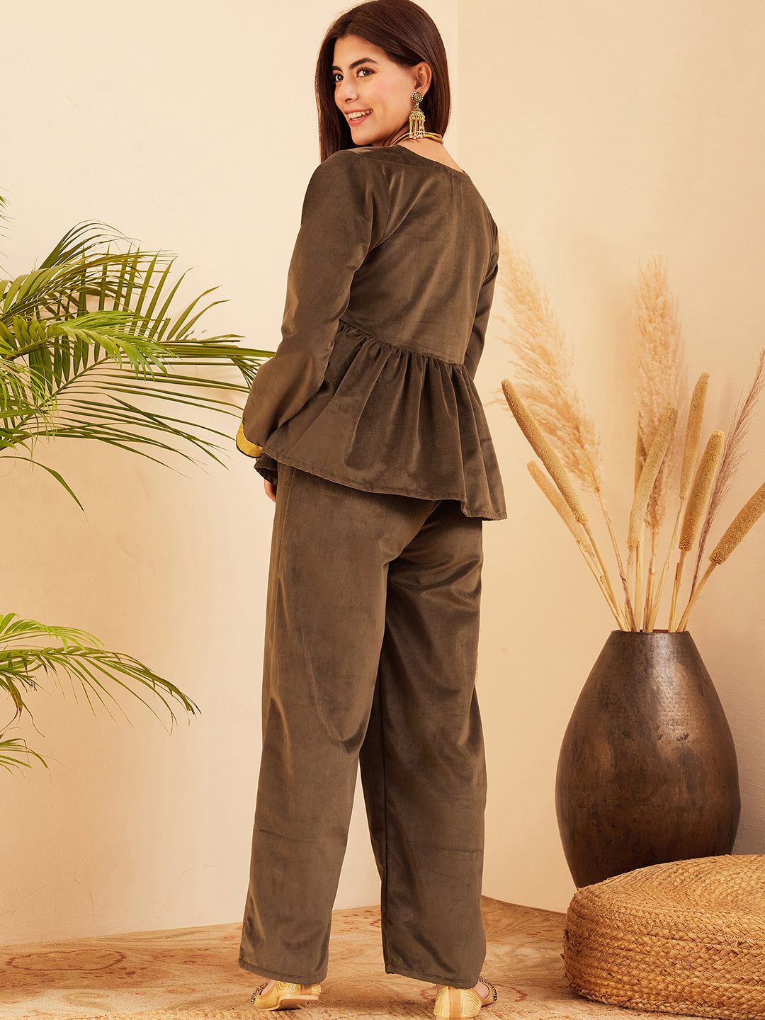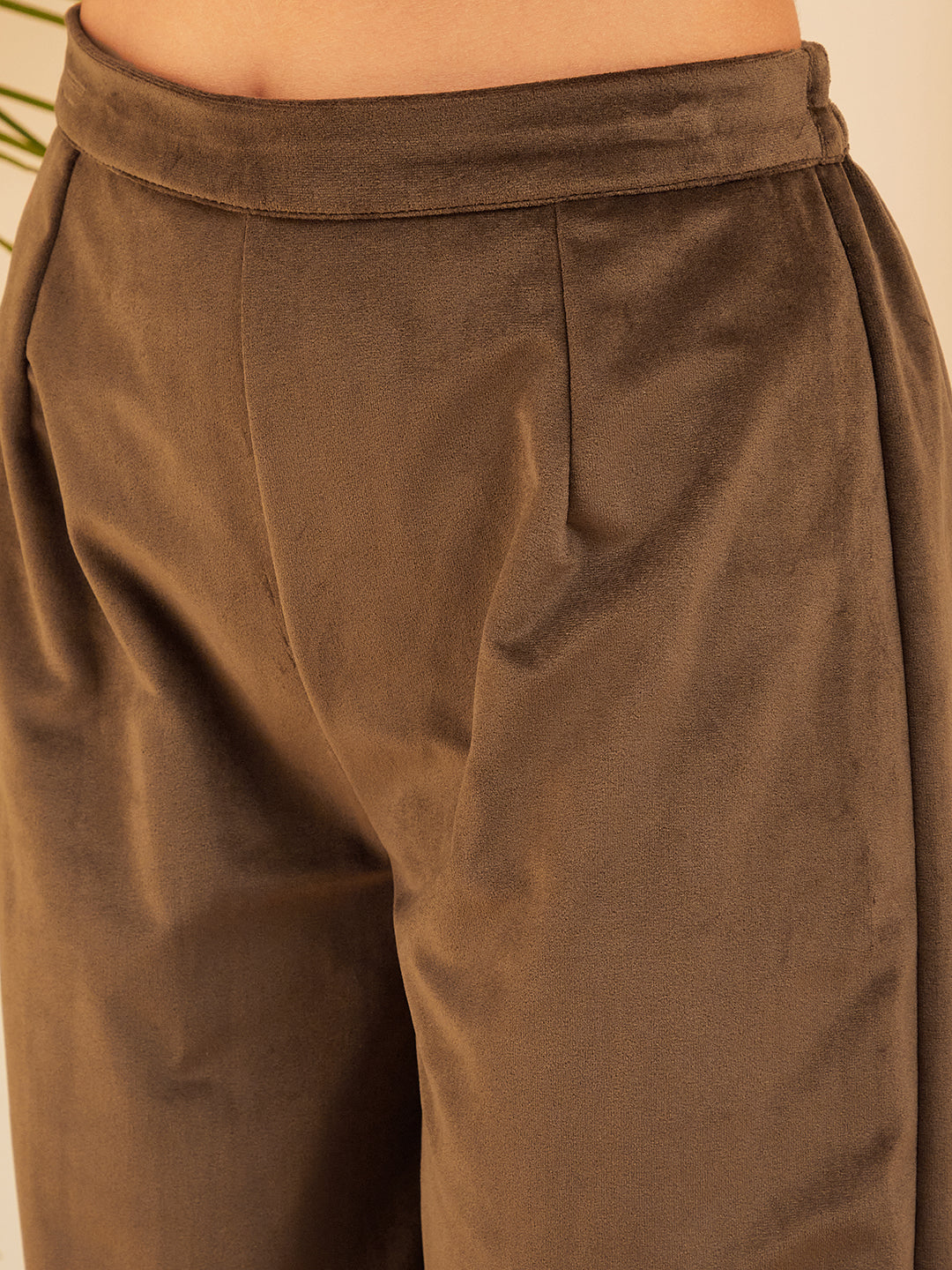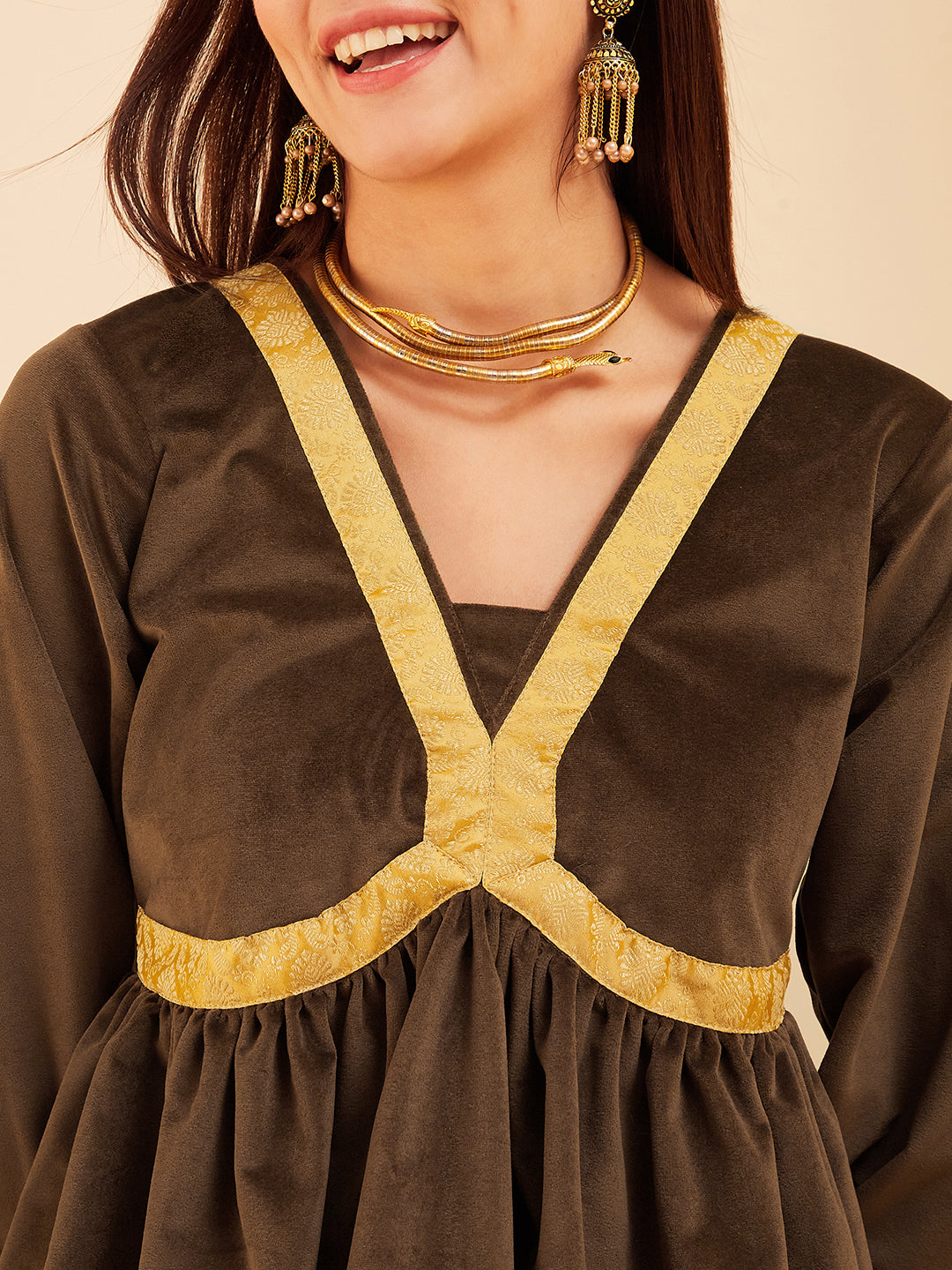Brown Mughal Shaan Style Velvet Short Kurta Set