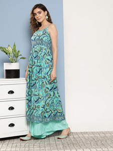 The Set is crafted from best of Indian fabrics. Style it with Oxidised jewelery and juttis and you are good to go for any outing Hand Wash Only Seperately.