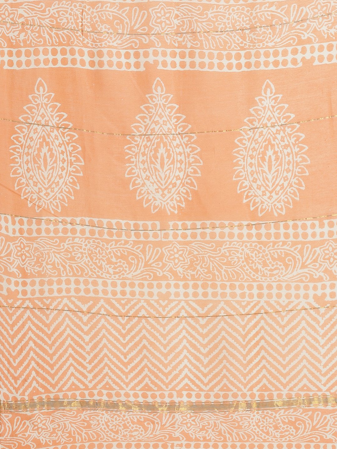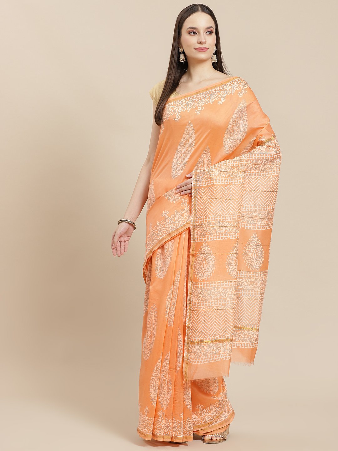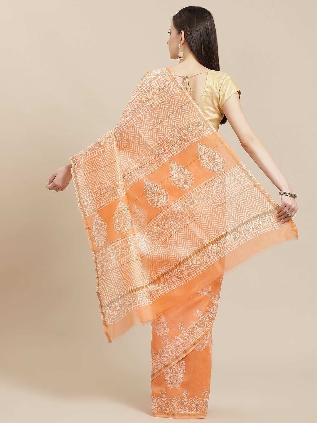 Our Block Printed Sarees, inspired by Indian Crafts. A stylish offerring for any family function or a get together of friends Fabric used : Chanderi. Dry Clean Only. This Saree comes with an un-stitched blouse