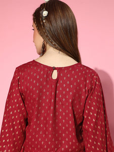 This stylish top is just what you need to make heads turn. Ideal for any semi-formal or casual occasion. Fabric used : Viscose Rayon. Fabric used for Lower : Viscose Rayon. Hand Wash Separately
