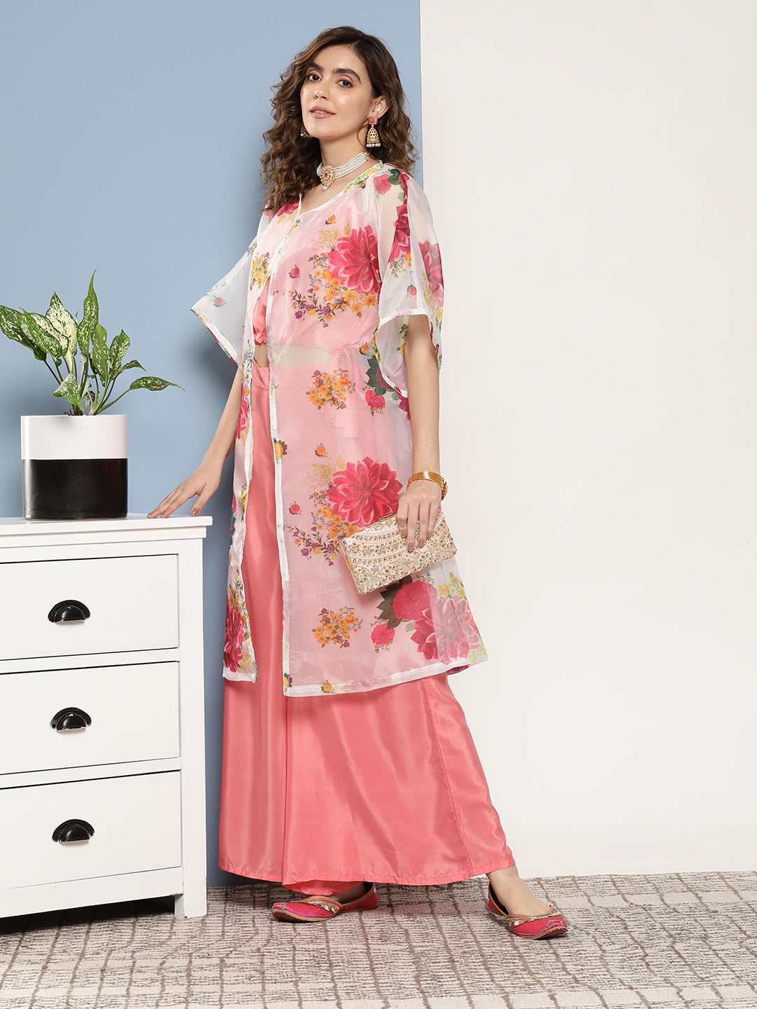 The Top Bottom Set is crafted from best of Indian fabrics. Style it with Oxidised jewelery and a sleek pair of shoes and you are good to go for any outing Hand Wash Only Seperately.