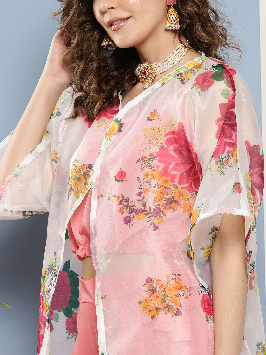Shrug, if in, the set, is of free size upto 42 inches (106.7 cms)