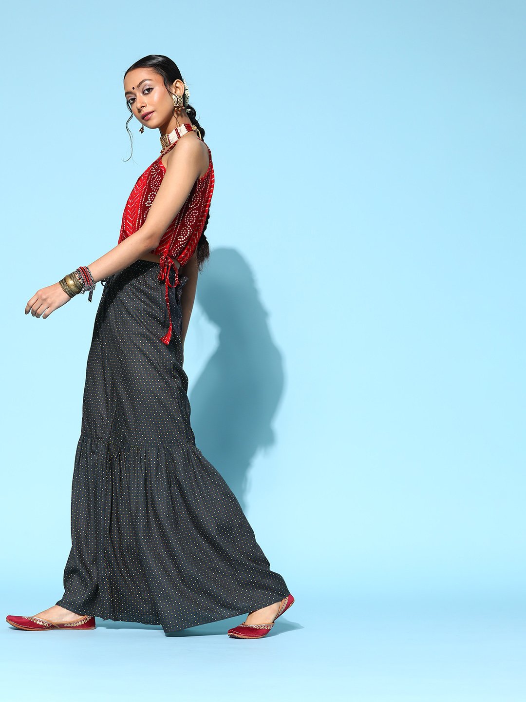 Walk into the new season in style with this chic clothing set. Including printed top and printed palazzos, this set will make you look beautiful. Fabric used : Viscose Rayon. Fabric used for Lower : Viscose Rayon. Hand Wash Separately