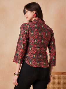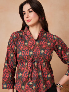 Look spick and span by dolling up yourself in this turquoise blue colored 3/4 Sleeve top. This blouse can be paired with dark denim and hoops.