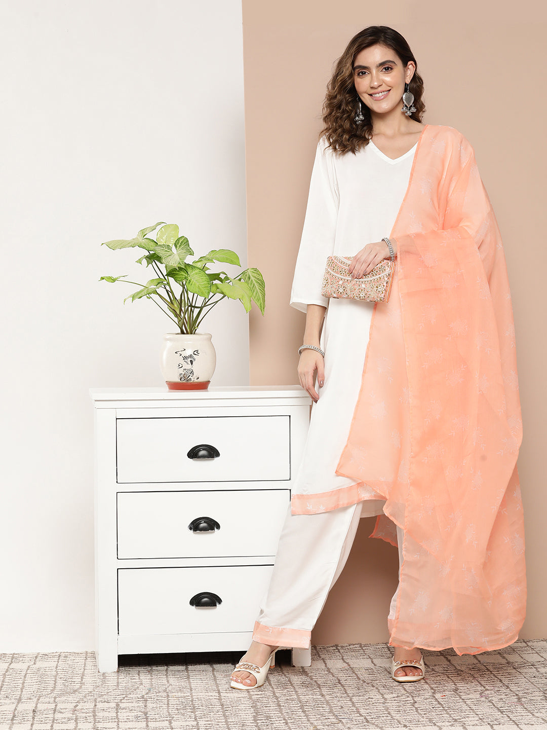 Dupatta, if any, has a length of 225 cms / 2.25 m / 88.5 inches. Width is 107 cms / 42 inches