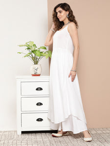 The Set is crafted from best of Indian fabrics. Style it with Oxidised jewelery and juttis and you are good to go for any outing Hand Wash Only Seperately.