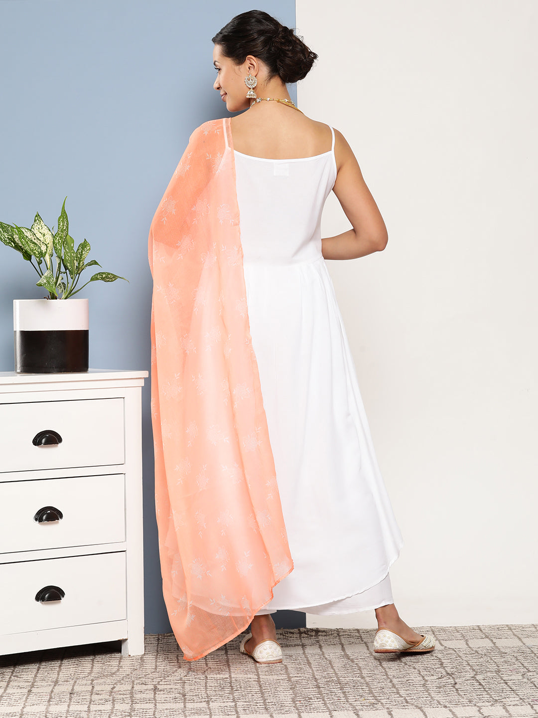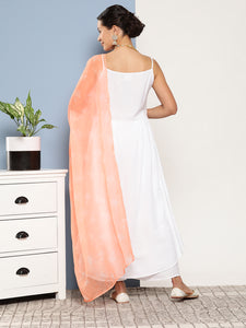 Dupatta, if any, has a length of 225 cms / 2.25 m / 88.5 inches. Width is 107 cms / 42 inches