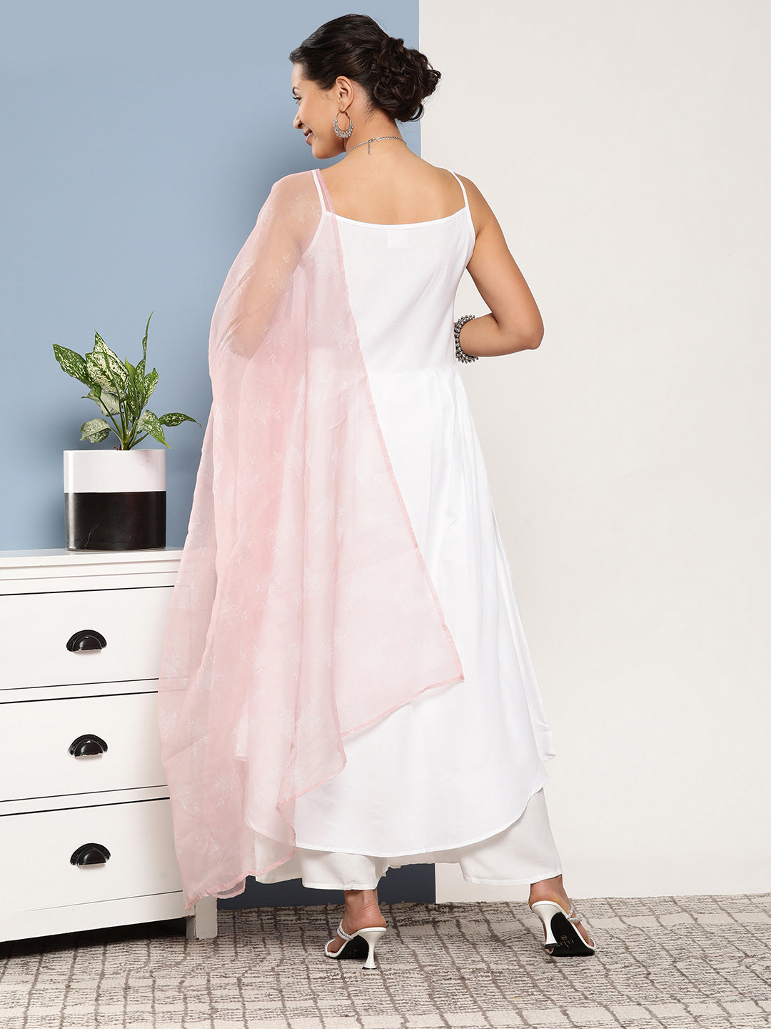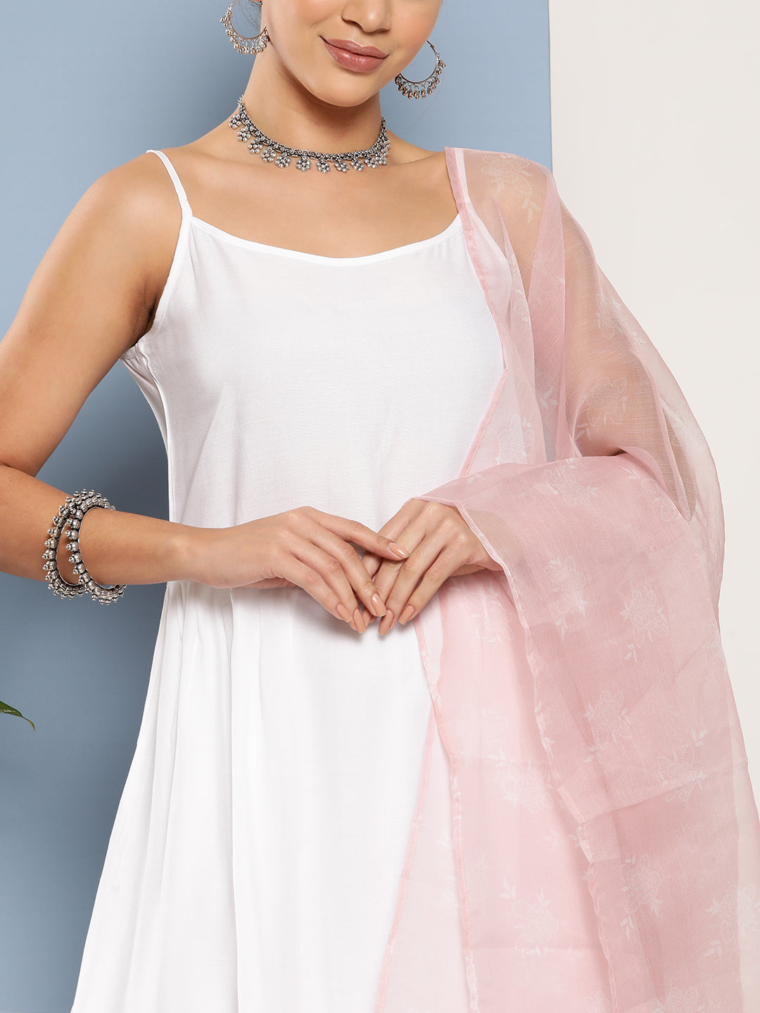 Placeholder Cream Strappy With Pink White Chintz Organza Dupatta - InWeave