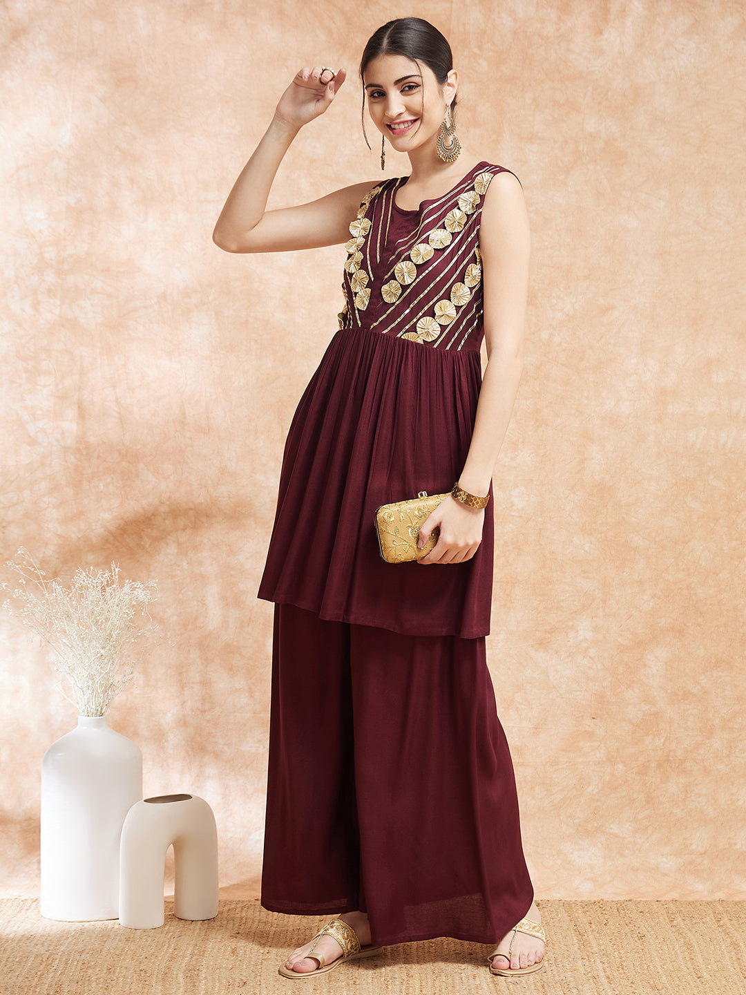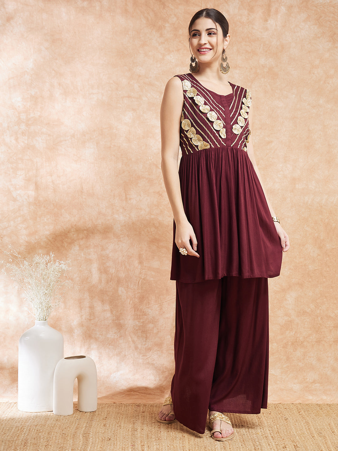 The Set is crafted from best of Indian fabrics. Style it with Oxidised jewelery and juttis and you are good to go for any outing Hand Wash Only Seperately.