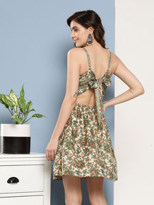 A fusion of tradition and trend, this indo-western style dress will double your charm. It features a quirky print and hue.