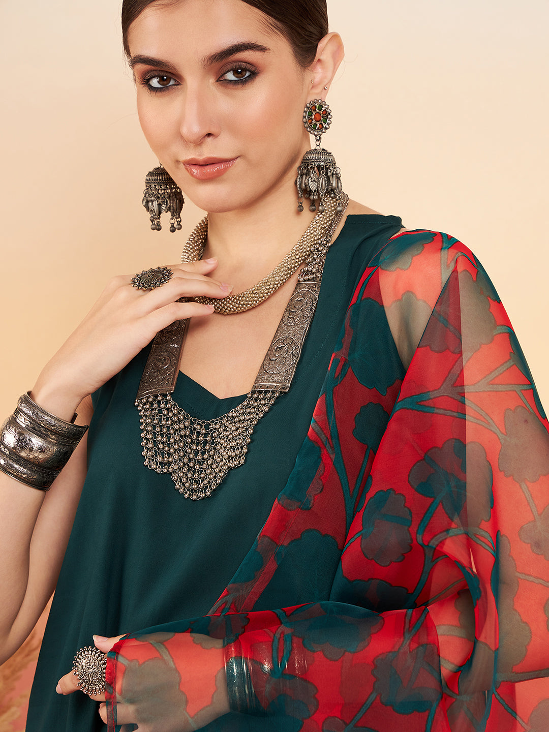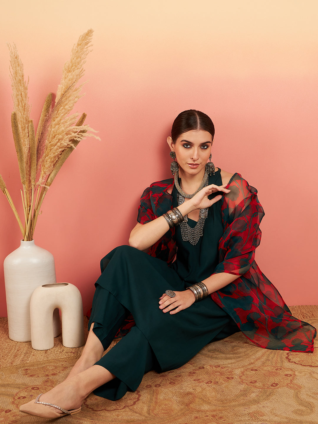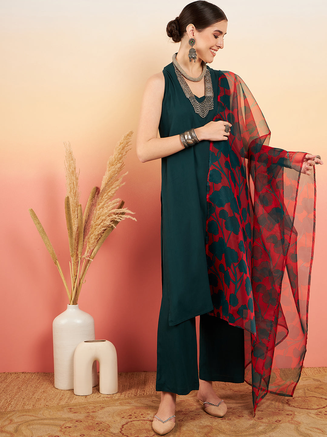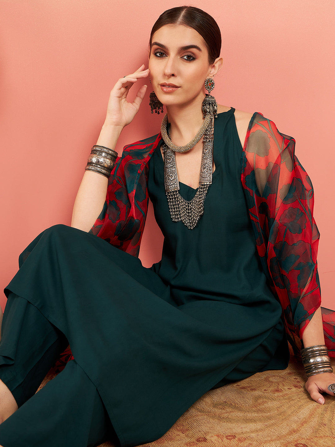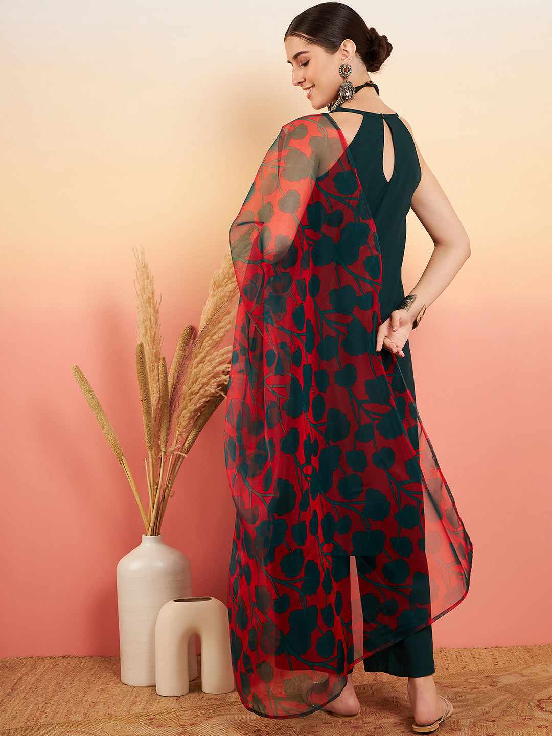 Dark Green Neck Patti Halter Kurta Set Red Green Or Dupatta