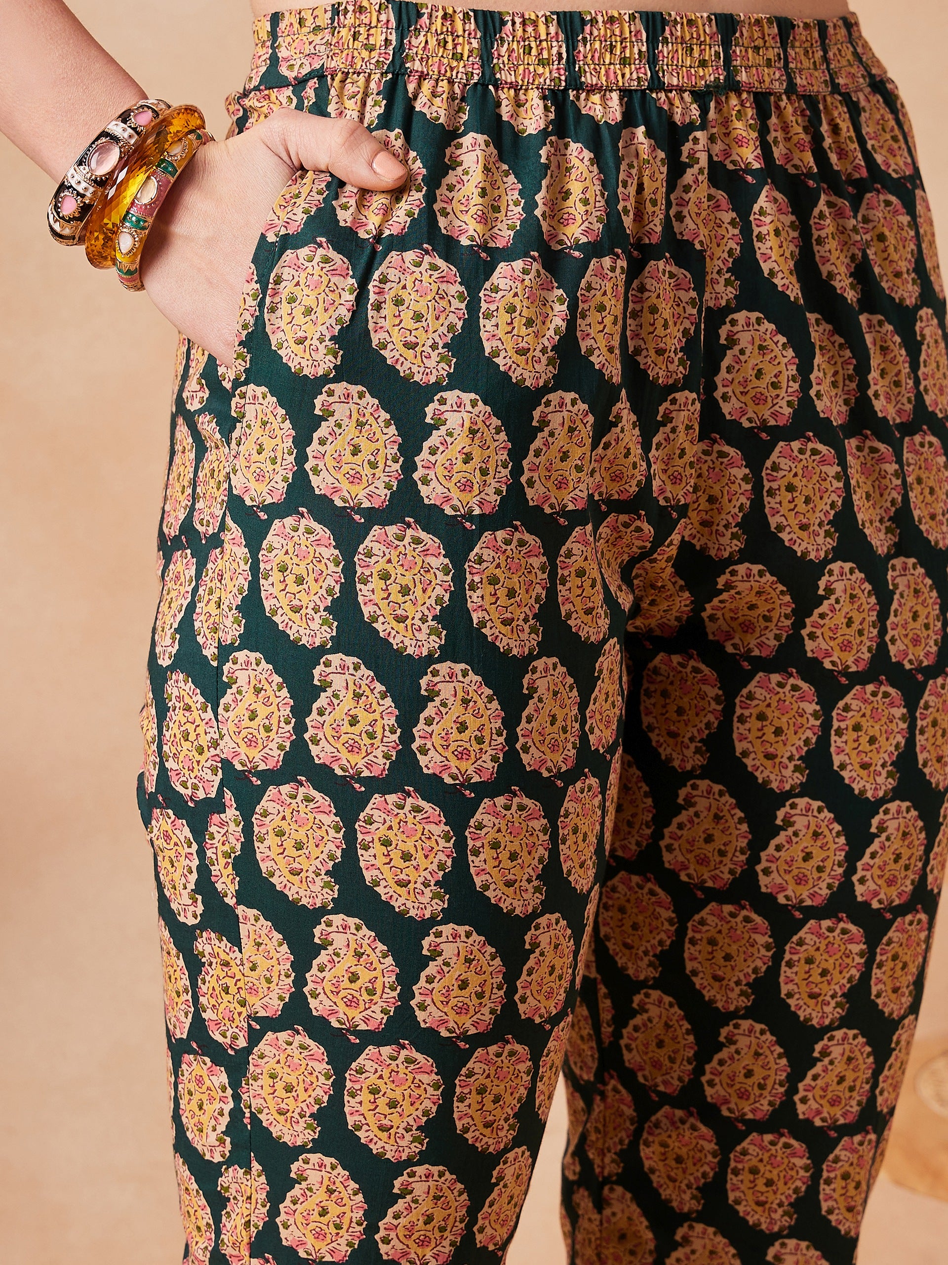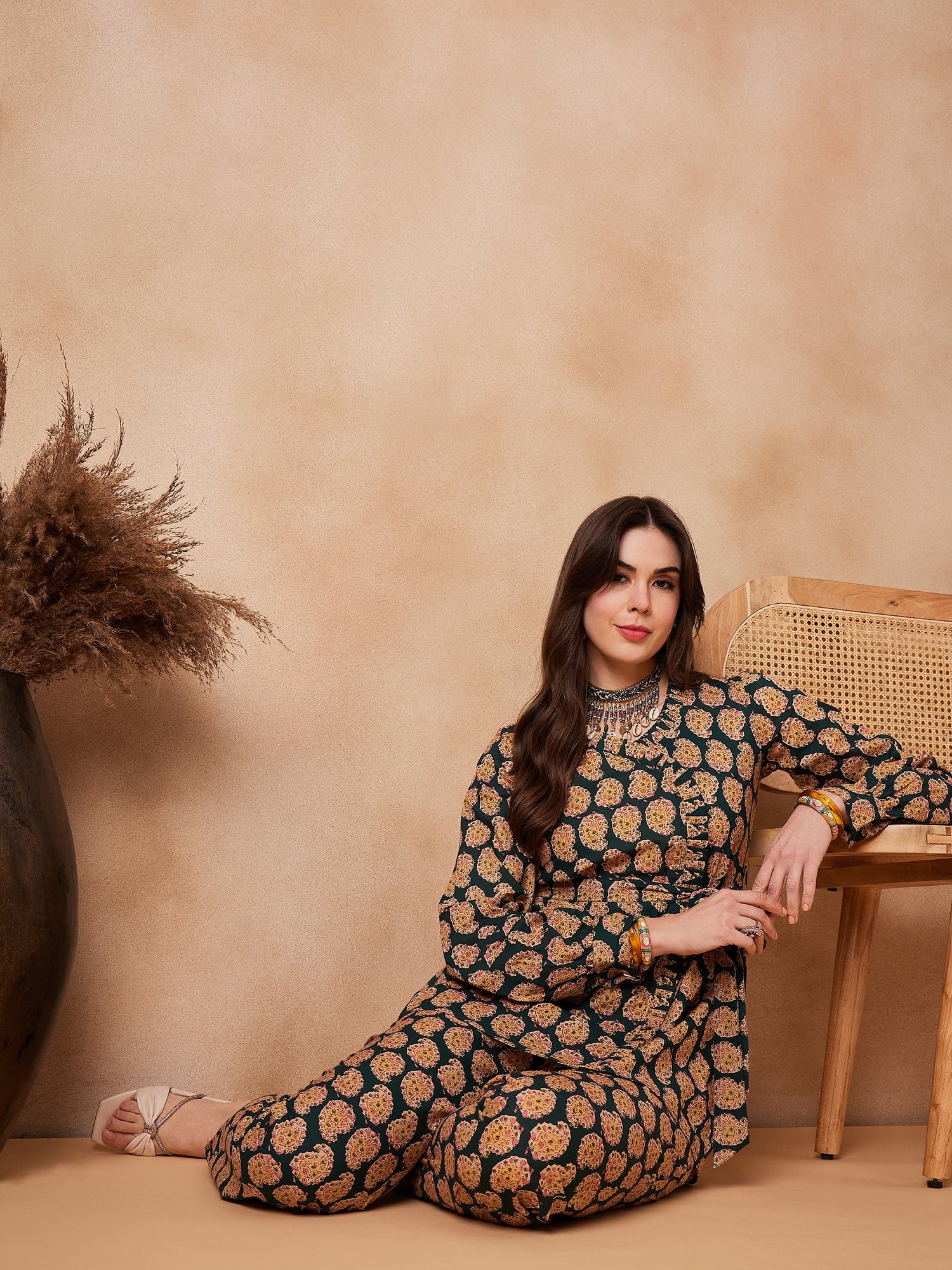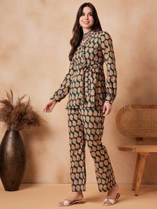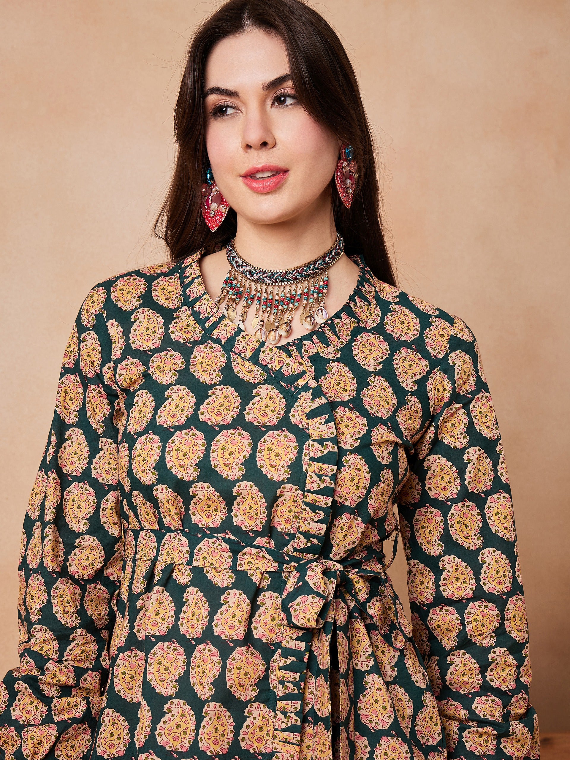 Placeholder Dark Green Paisley Print Coord Set With Belt - InWeave