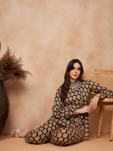 The Top Bottom Set is crafted from best of Indian fabrics. Style it with Oxidised jewelery and a sleek pair of shoes and you are good to go for any outing Hand Wash Only Seperately.