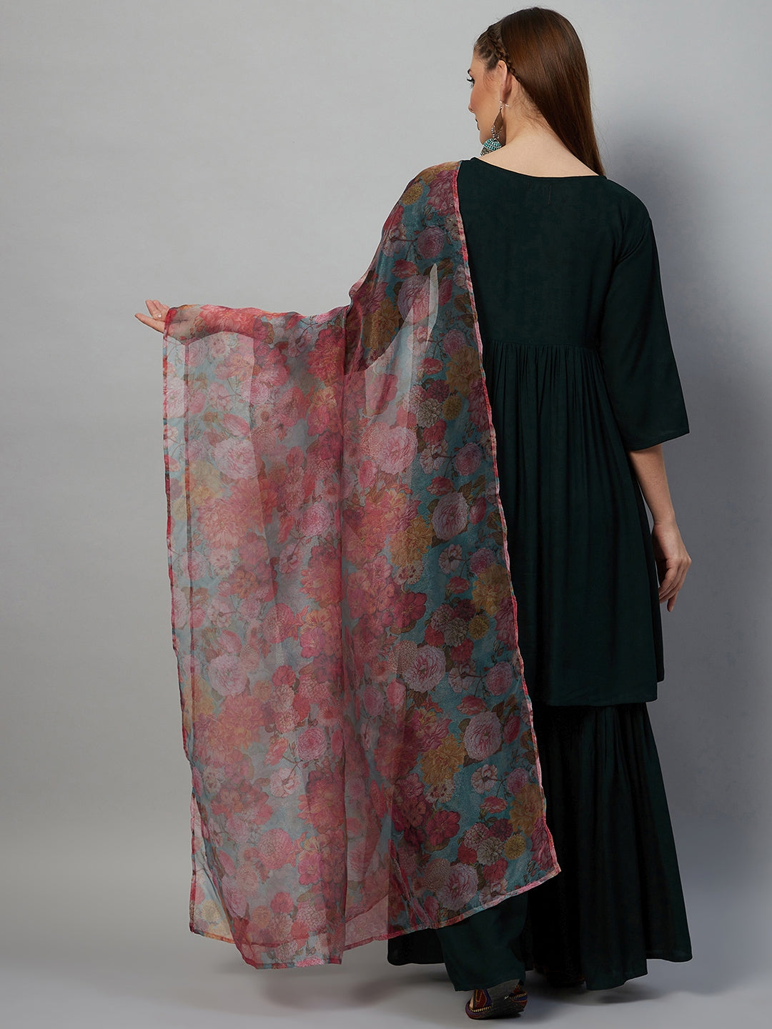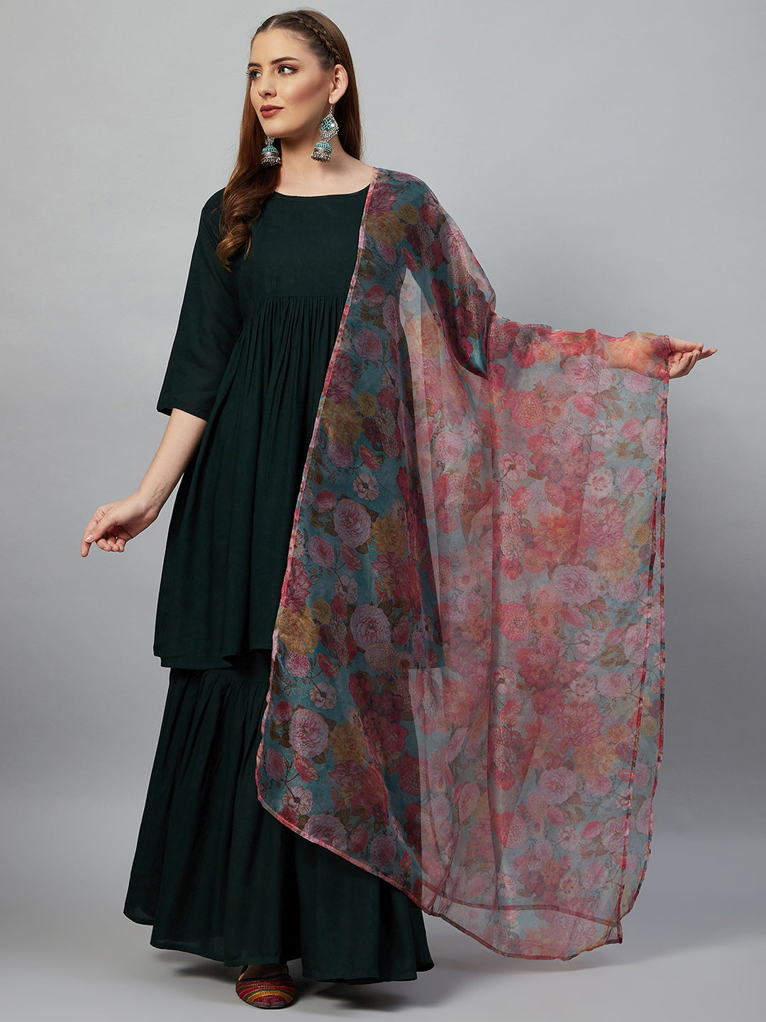 Dupatta, if any, has a length of 225 cms / 2.25 m / 88.5 inches. Width is 107 cms / 42 inches