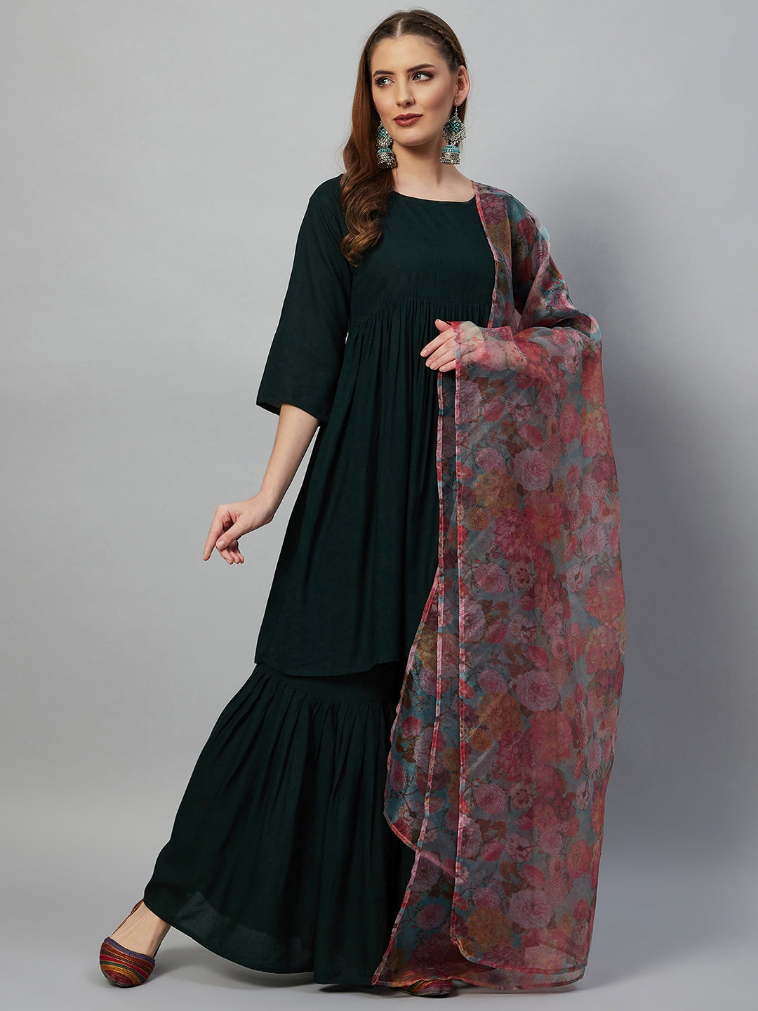The Set is crafted from best of Indian fabrics. Style it with Oxidised jewelery and juttis and you are good to go for any outing Hand Wash Only Seperately.