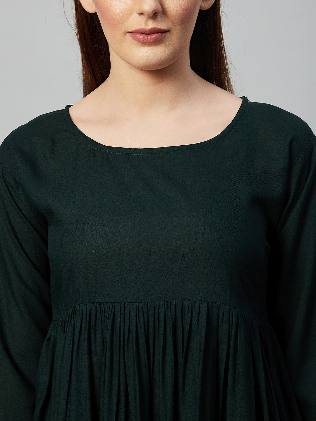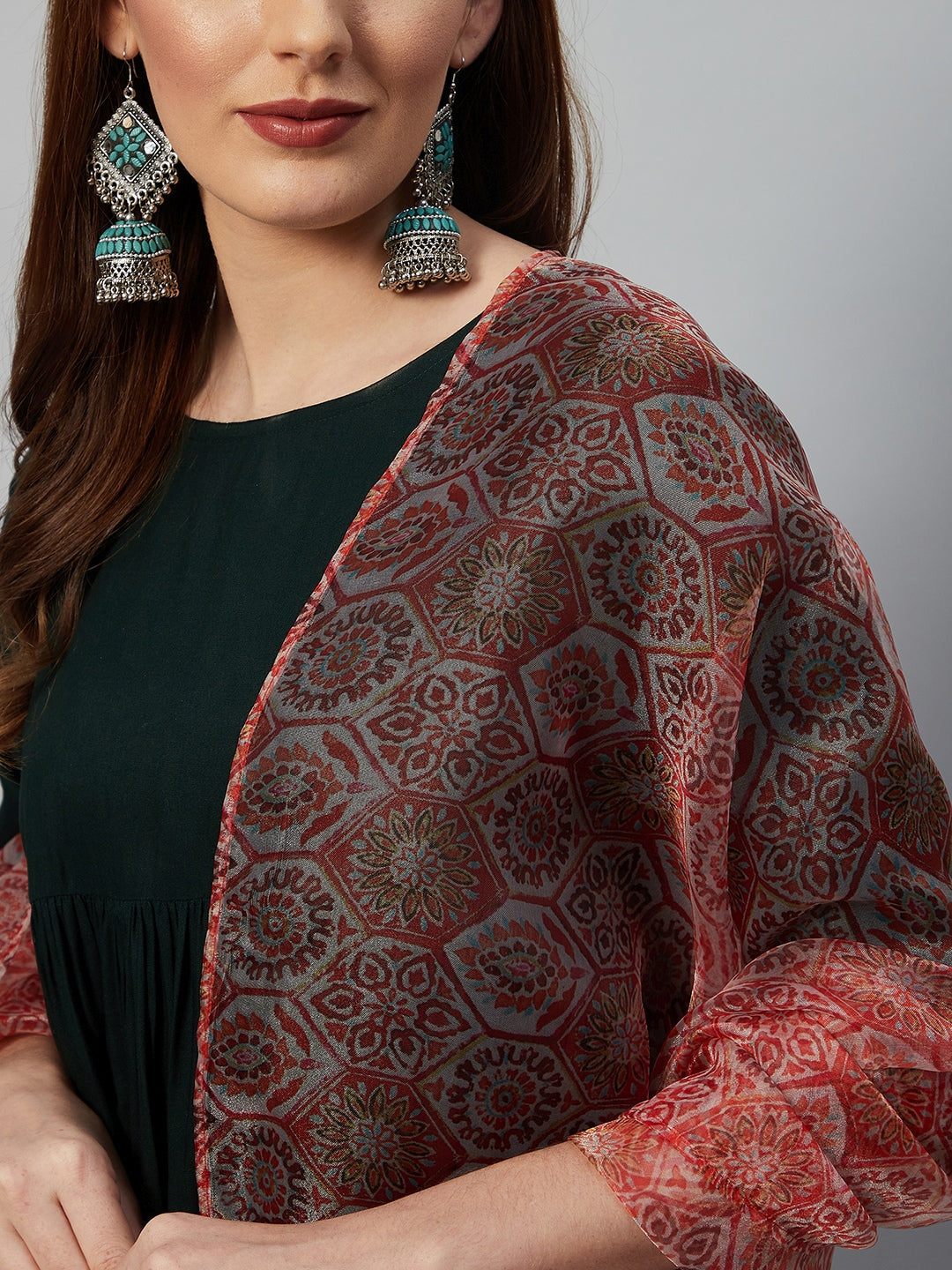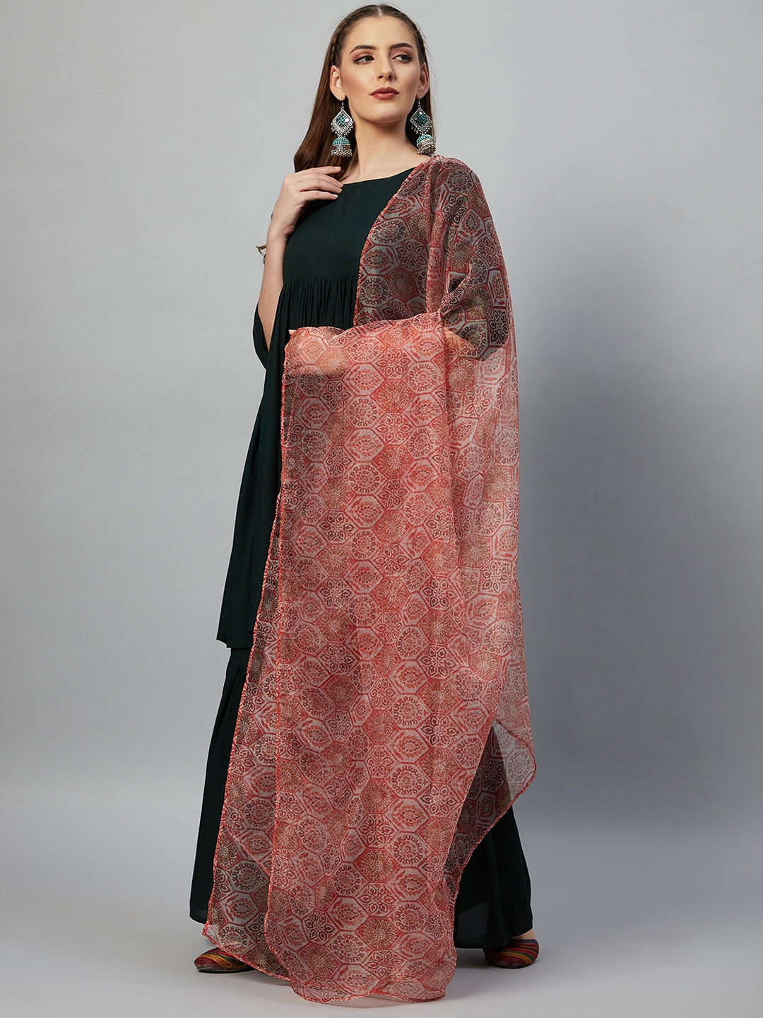 Placeholder Dark Green Sharara Set - Orange Organza Dupatta - InWeave