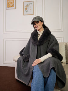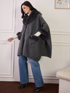 The Dark Grey Boho Fur Poncho brings a free-spirited, contemporary vibe to winter wear. With its textured fabric, loose drape, and fur accents, it blends bohemian charm with luxurious warmth.