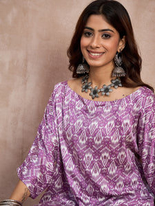 Placeholder Dark Mauve Foil Boat Neck Dhoti Set - InWeave