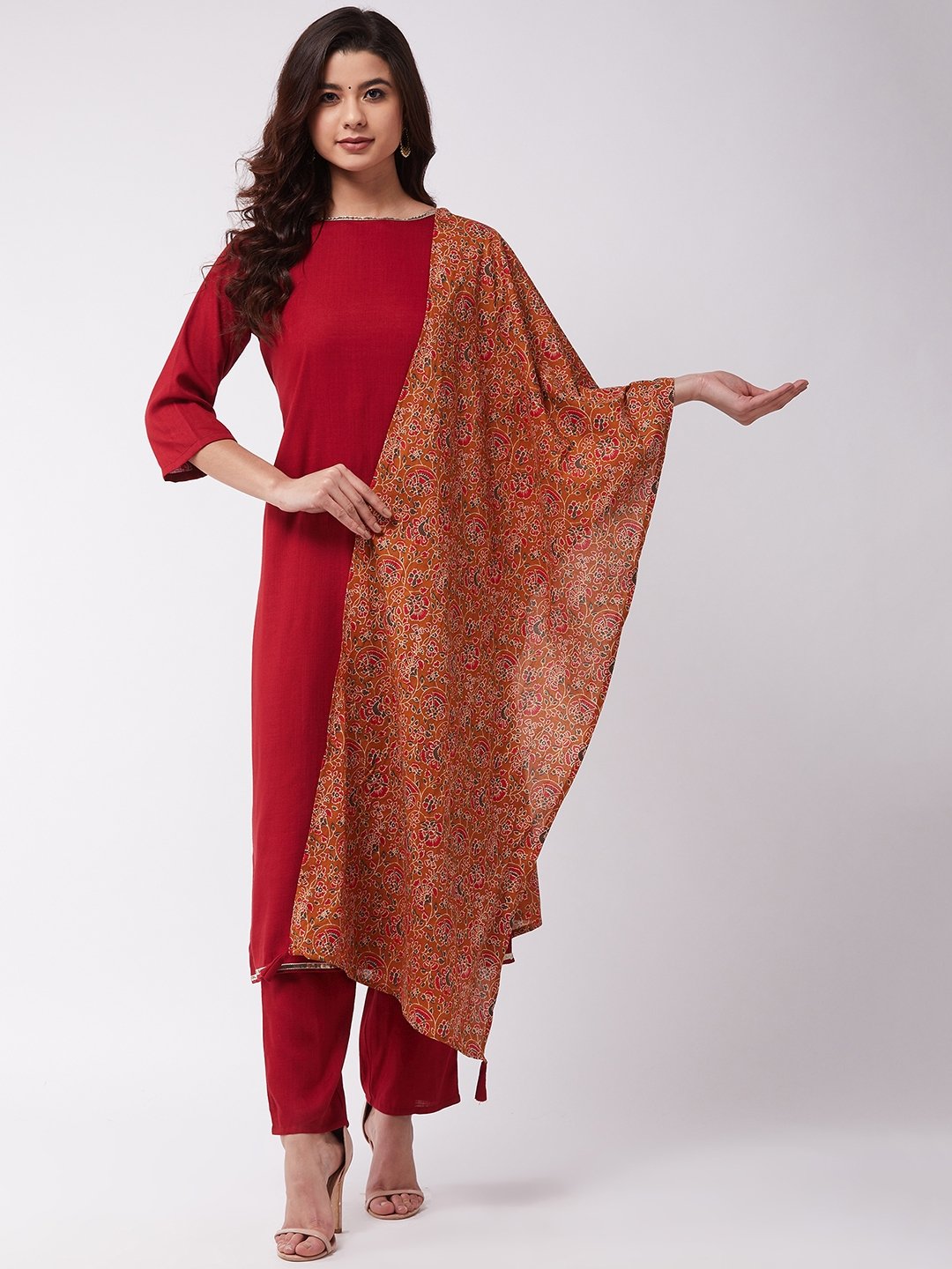 Intensify your pretty look with this dark mustard coloured printed dupatta. It features intrinsic design, print and sheen texture for a comfortable wear.