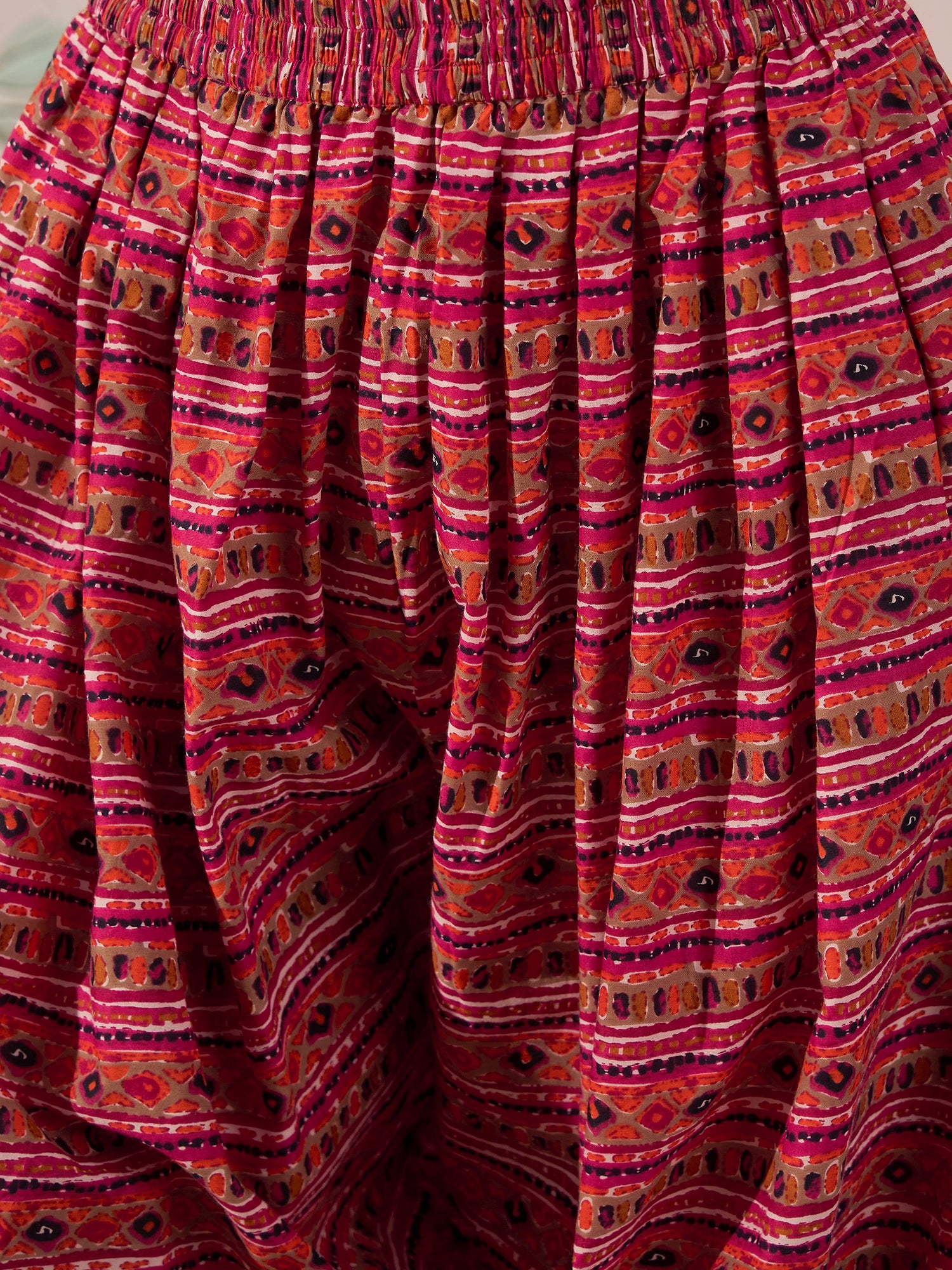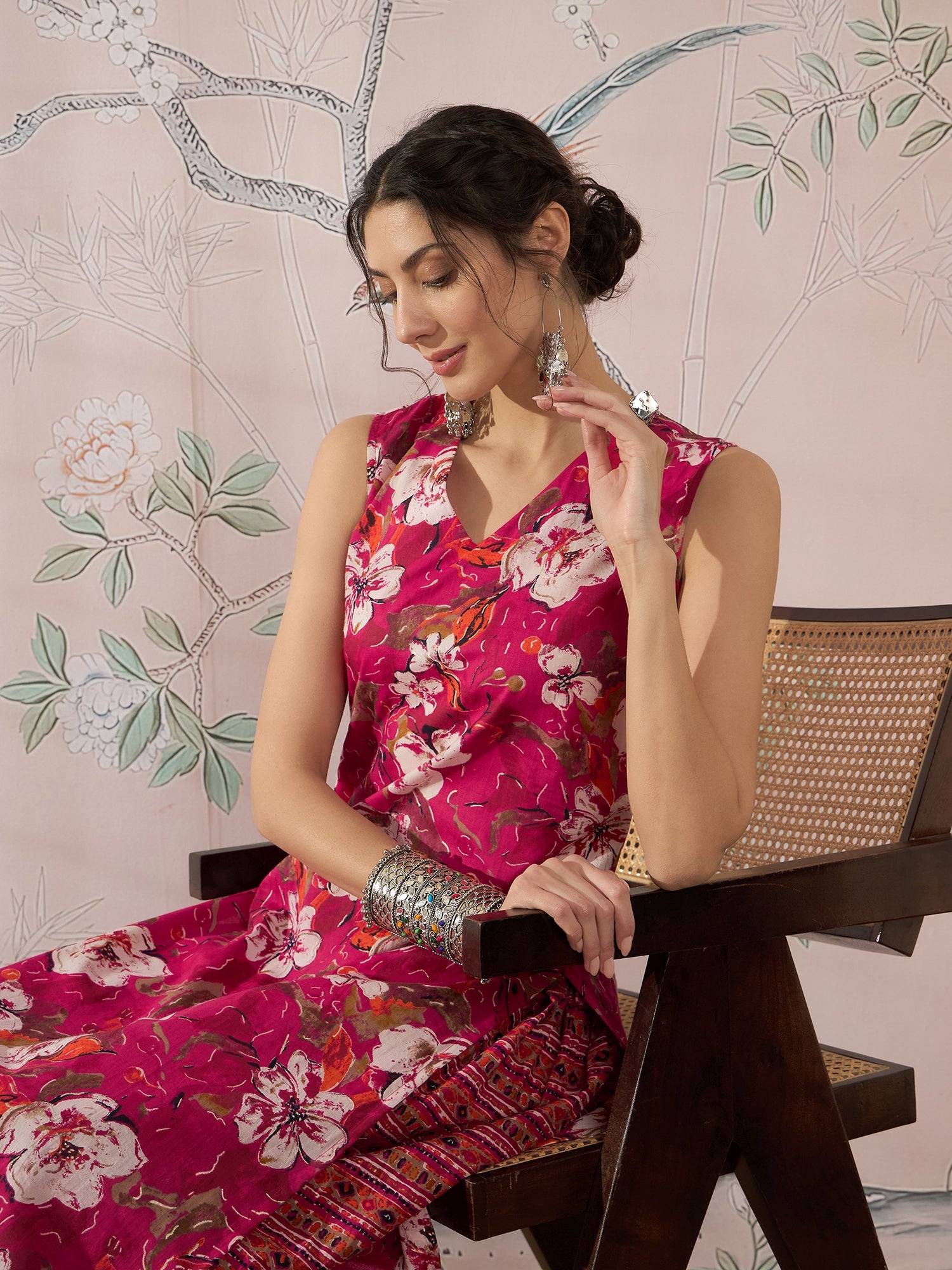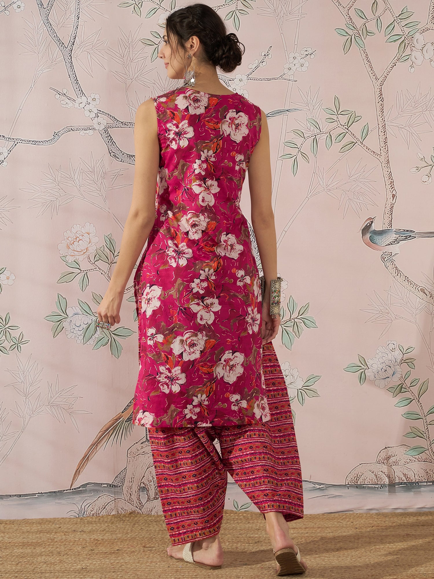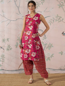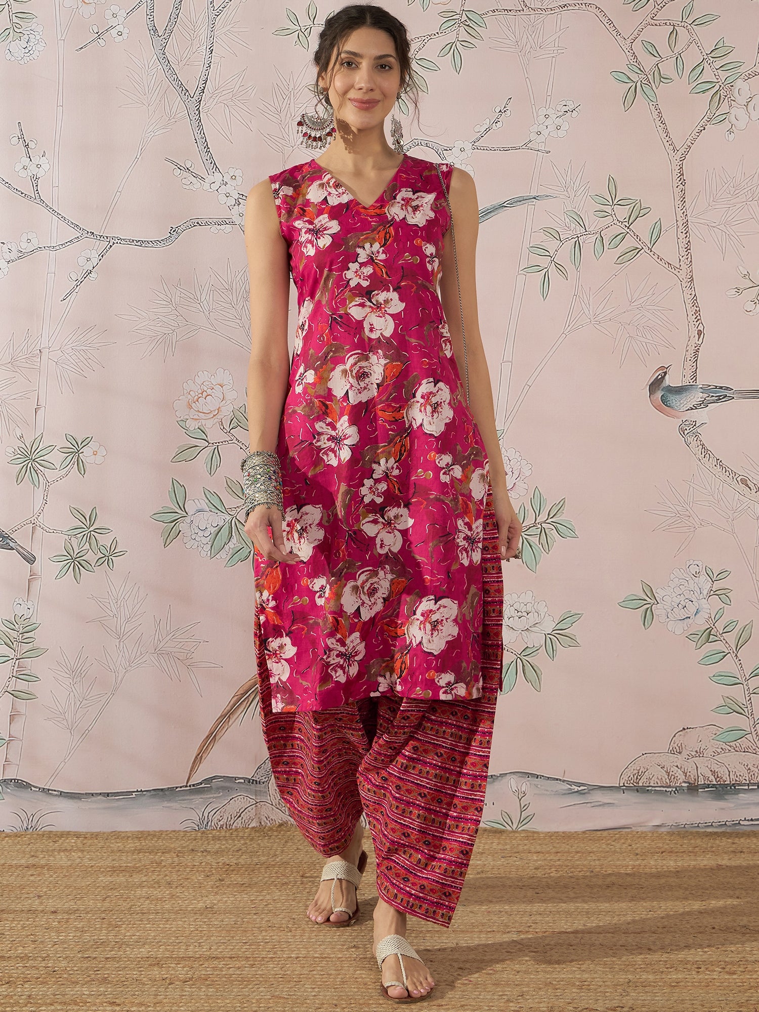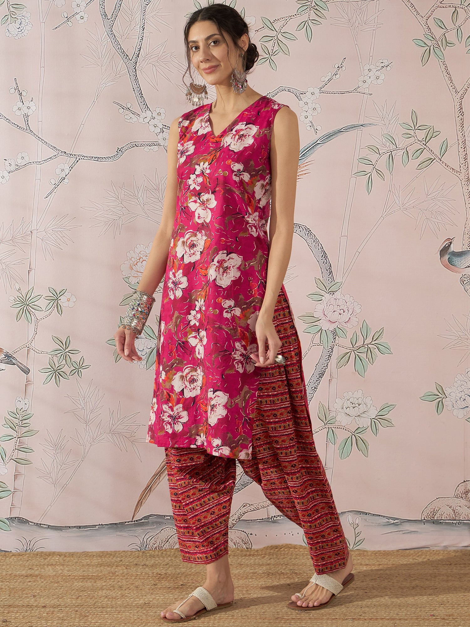 Exude elegance in this dark pink and cream kurta dhoti set. With a flattering V-neck cut and a beautiful blend of dark pink paired with creamy tones, the kurta brings a fresh, sophisticated vibe. The dhoti pants add fluidity and grace, perfect for festive occasions or formal events, where a harmonious mix of color and comfort is key.