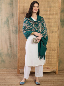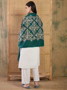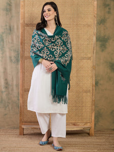 Bold yet graceful, the Dark Teal Aari Work Shawl is adorned with meticulous embroidery that contrasts beautifully with its rich teal color.