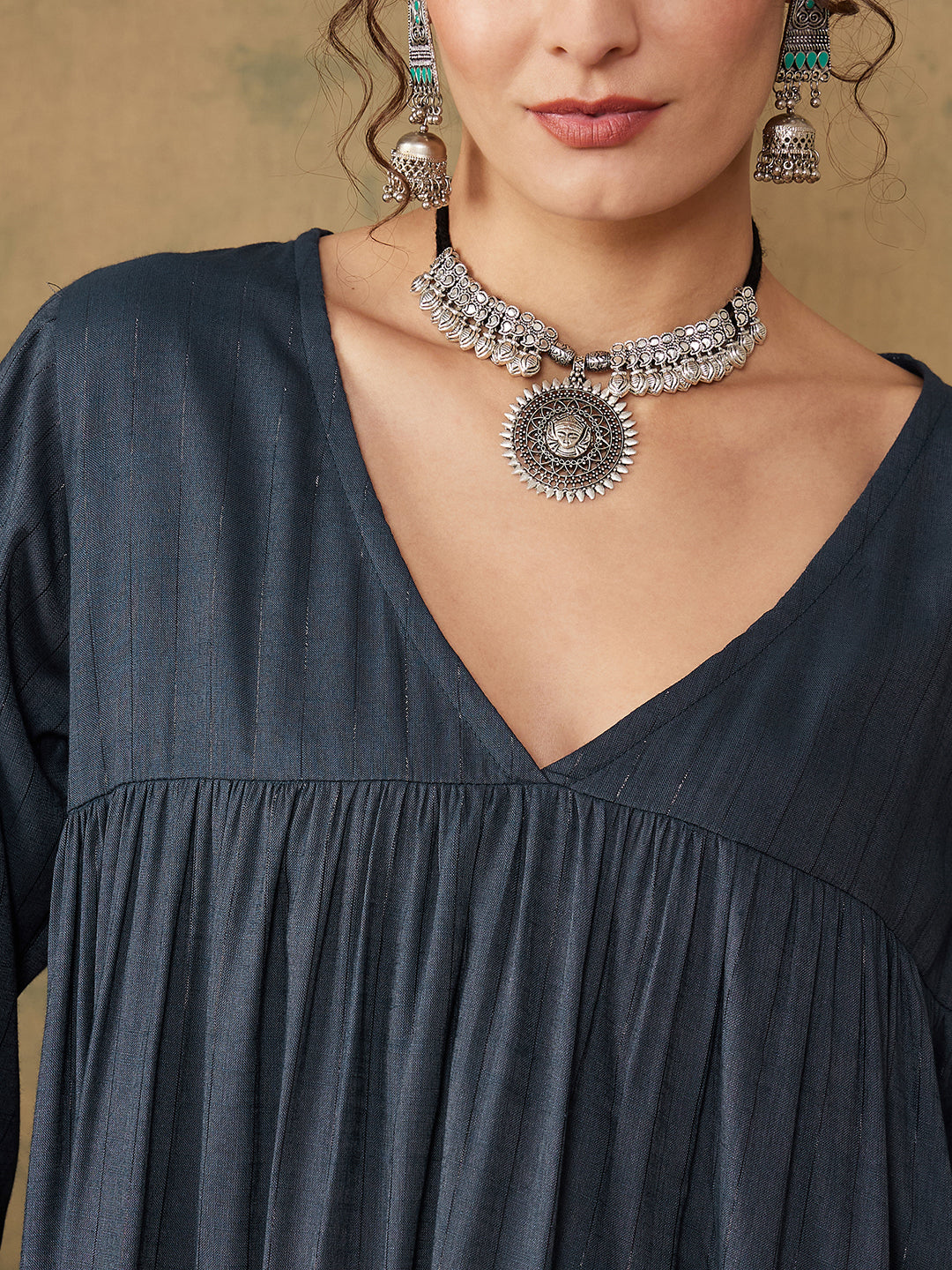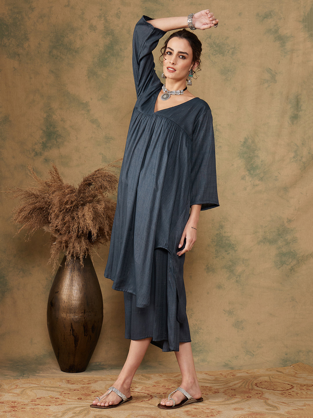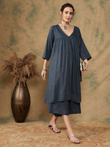 The Set is crafted from best of Indian fabrics. Style it with Oxidised jewelery and juttis and you are good to go for any outing Hand Wash Only Seperately.