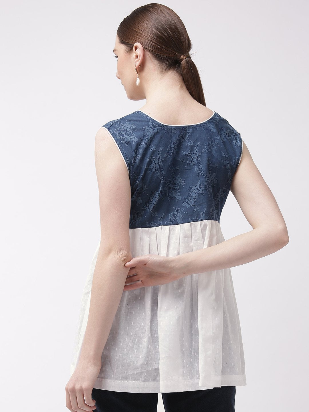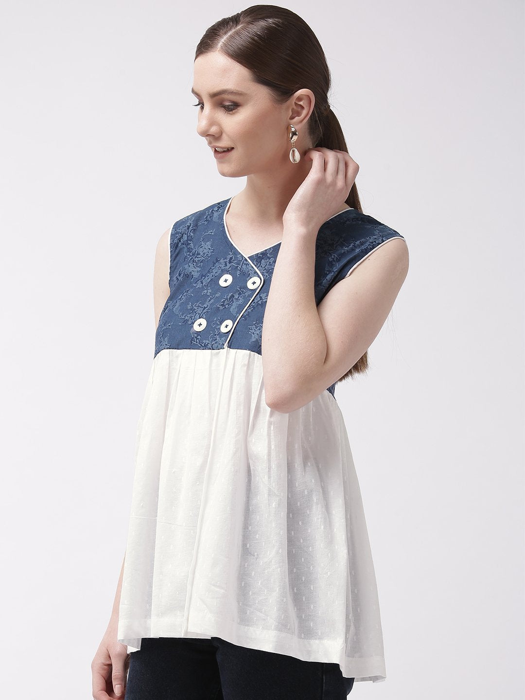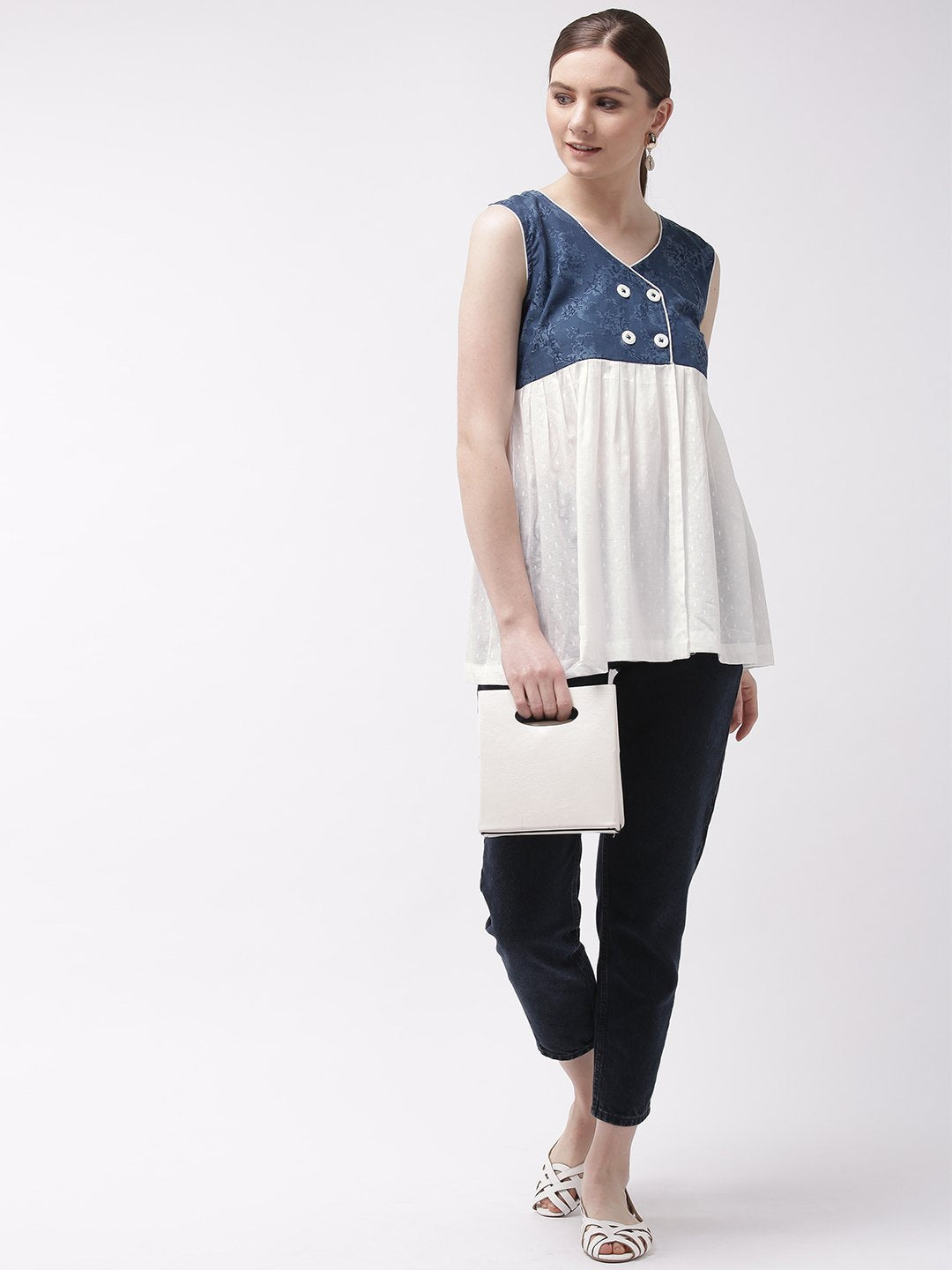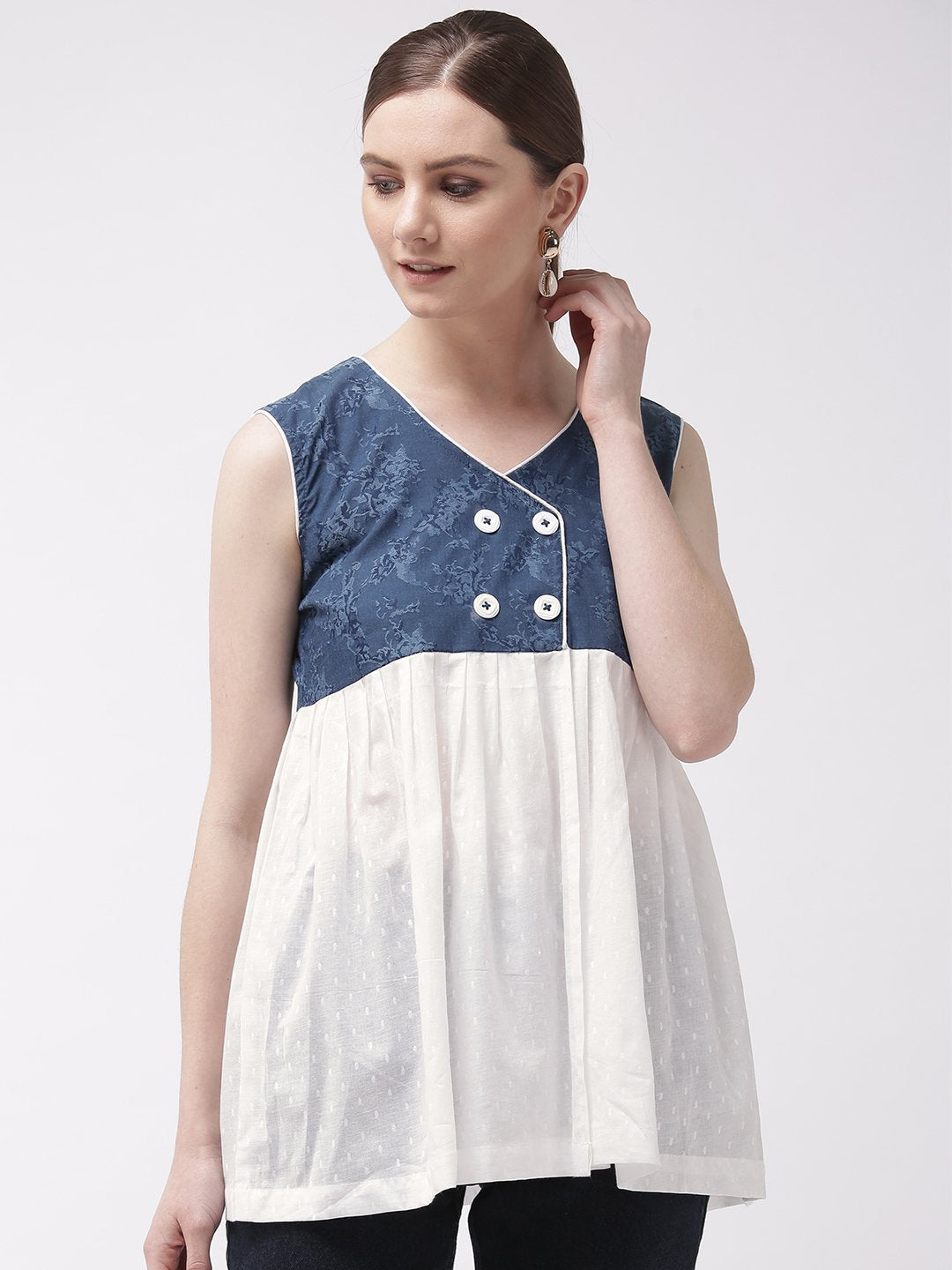Placeholder Denim Blue & White Top With Buttons - InWeave