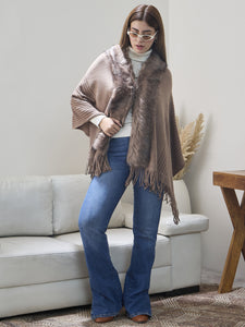 Black striped fur poncho with alternating fur textures bold yet versatile outerwear.